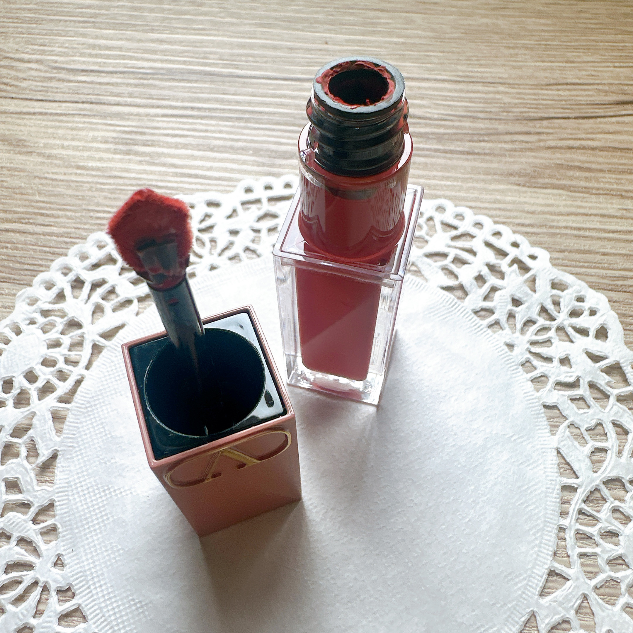 かなり高発色なのでチークとして使うとき、そのままチップで頬に乗せると濃く色付いてしまって失敗します。 手の甲に出して指でトントンと馴染ませてから頬に乗せるといい感じにじわっと感が出てよかったです♡ リップとして使うのは、私はマットリップが少し苦手なので唇の皮むけが気になって使えませんでした。