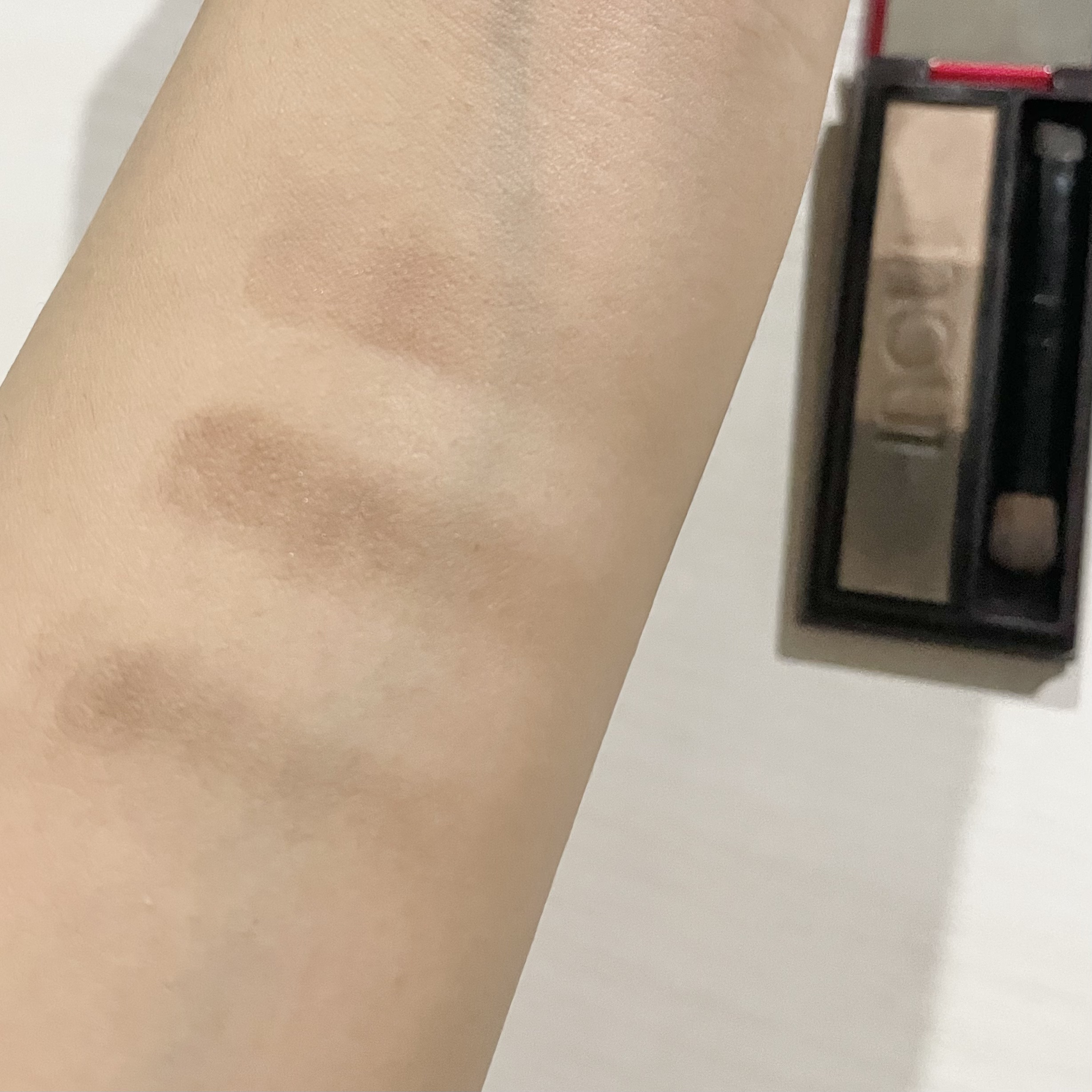 しっかりプレスされた固めのアイブロウパウダー👀 しっとりした粉質で、柔らかい発色!! なのでドバっと描きました!!という印象になりにくいです。 発色の調節がやりやすいアイブロウパレットです✨