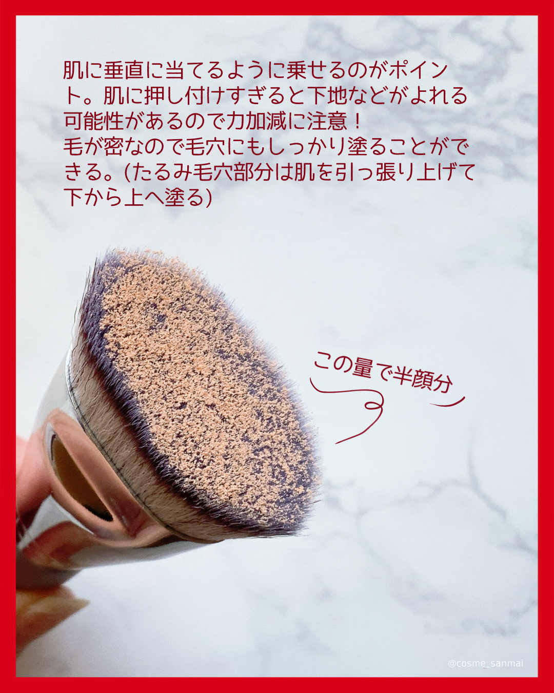 パウダーファンデ、何でつける?付属のパフでつけるのが一般的だと思うけど、ちょっと使いづらいかもしれない、もっと使い心地の良いツールがあるかもしれないと、思いいろんなアイテムを試しています。ブラシについては画像を見ていただくとして、結局パウダーファンデをきれいにつけるには、下地がとにかく大事‼️特にパウダーファンではベースがしっとりしすぎていると引っかかってきれいに乗ってくれない。もちろん力加減にもよるんだけど、パフやブラシに引っかかることでよれる原因にもなる。なので、必ずティッシュオフは必須!それでもひっかかりを感じる人は、フェイスパウダーを乗せることでだいぶ抑えられる!そして、極論を言えば、下地自体も最低限がいいかもしれない。正直、ファンデだけでもそれなりの仕上がりになるので、めちゃくちゃ気になるシミとかはコンシーラーで消す位でいいかも。私は超乾燥肌なので、パウダーファンでは夏のみの使用の予定。秋冬に使うとしたらどうしてもしっとり系の下地を使うことになるので、お直し用かなぁ。最近はあんまりパウダーファンデーション流行ってないけど、持ち運びのしやすさや軽さ、手軽さは他のファンデにはないんだよね。上手に使ってメイクを楽しみたい!-----------------ロージーローザマルチファンデブラシ-----------------どんなファンデーションでも使えるブラシということで使ってみました。かなり密着力を高める作りになっていると感じます。ただどうしても力が入ってしまうが故に、パウダーファンデの場合は下地が寄れそうになるので、そこは要注意。⚠️ちょっと濡れるっていうより、しっかりメイクを丁寧にするときに向いている気がする。これでリキッド塗るのは多分いいと思うので、今度はリキッドで試してみます。#ロージーローザ #ファンデーションブラシ#マルチファンデブラシ#ファンデーション#メイク道具#メイクツール#ドラコスこれ買って
