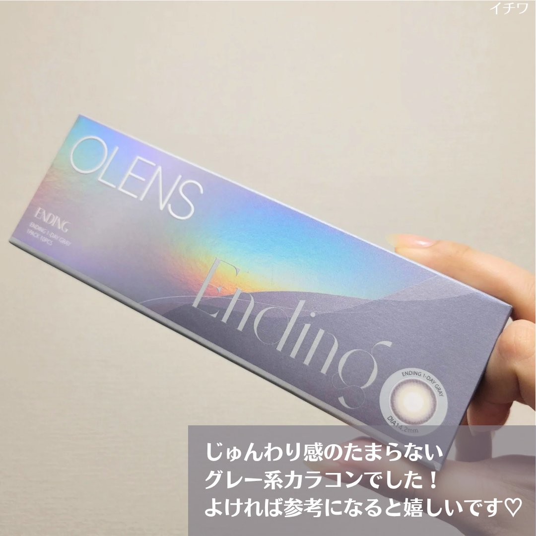 グリーンを忍ばせたグレーカラコン!OLENSEndingGrayレビューOLENSEndingGray1day1箱10枚入りDIA14.2mm着色直径13.2mmBC8.7mm含水率48%グレー苦手!と思うイエベさん!EndingのGrayが...