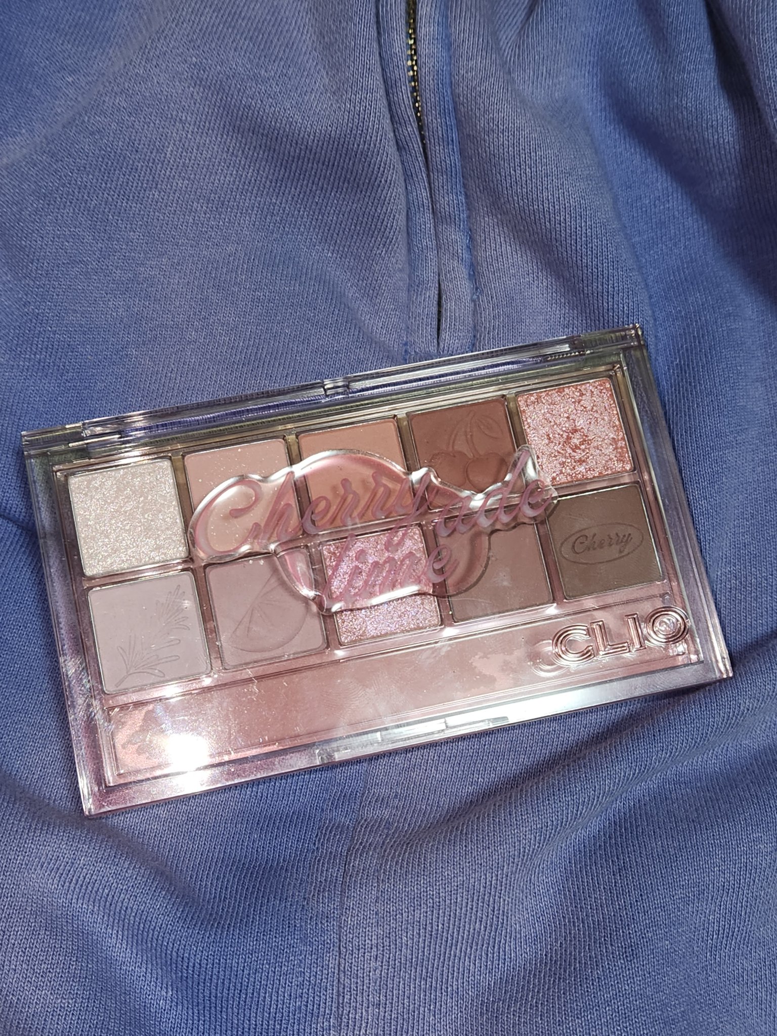 上段はチェリーピンク、下段はパープル系ピンクの全体的にブルベ向けピンクパレット。 ラメも全部ピンク系でシルバーラメ🪽大粒グリッターがないところがナチュラルメイク派の私的には捨て色なくて嬉しいポイント☆ この新作が発表された瞬間、チェリーモチーフ大好きな私は買うことを決意🥹そして発売されて即ポチ、、、 ラメもしっとり密着度が高いし、発色もいいしクリオはダブルエンドのブラシ付きなのも嬉しい♩ ピンクメイク好きにはたまらないパレット💞地雷メイクする方にもめっちゃおすすめ🥰