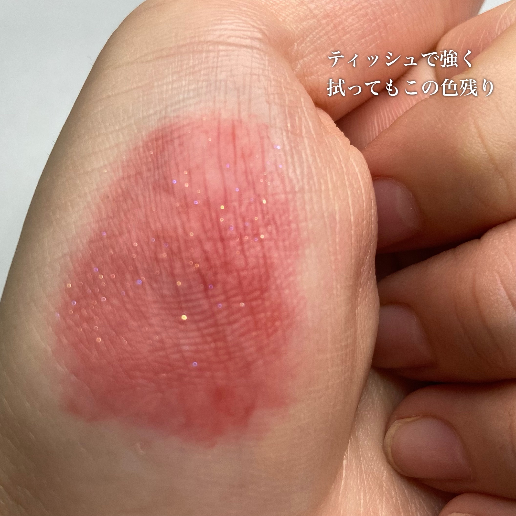 全色当たり!ってくらい色味も可愛くて、見たままの色味で自然に染まる感じ。時間が経っても色落ちもムラになりにくく自然な血色感を残してくれます! それぞれのカラーによってラメの色味も異なります☝🏻 ͗ ͗ 個人的に01と03が好きだな〜♡♡ 皮むけもなくつけ心地も軽やかで、濃淡の調節もしやすい!