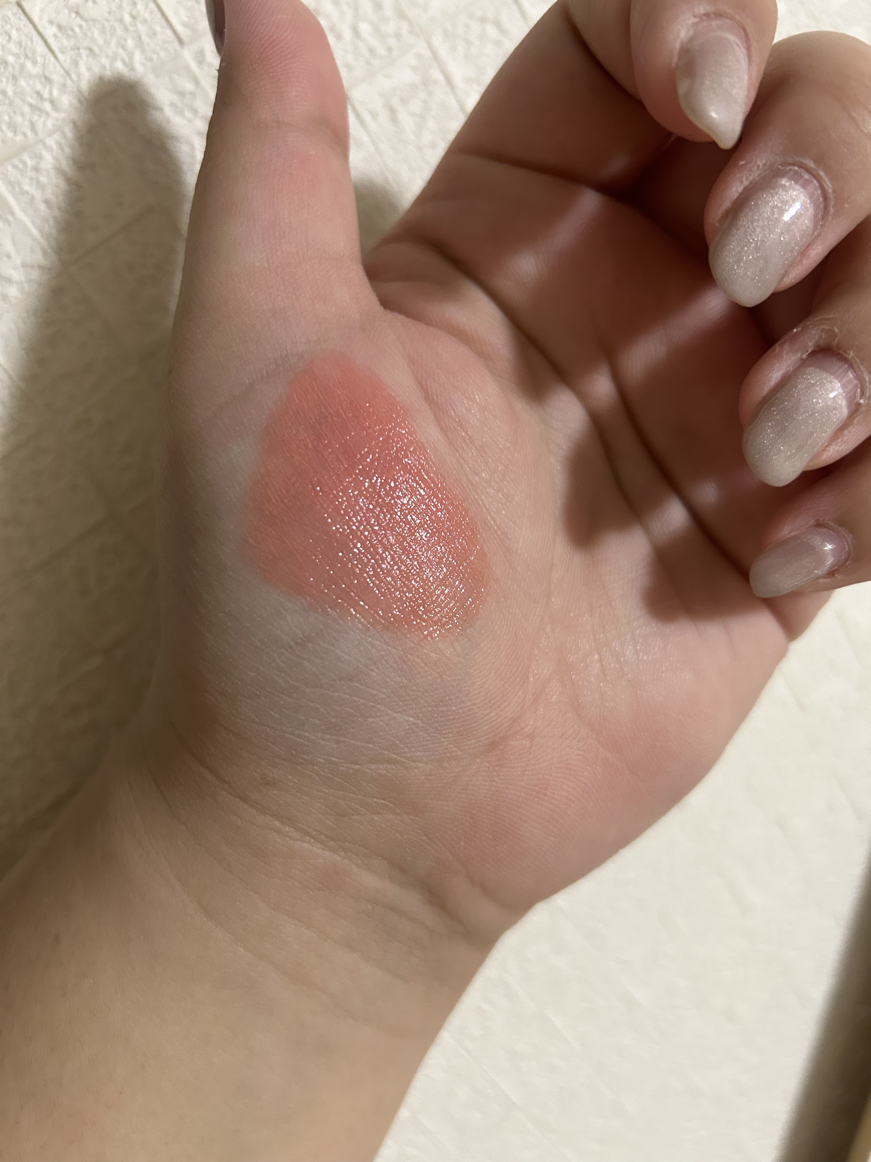 色味と仕上がりと色持ちが大好き!!なんだけどちょっと香りが強い😭 塗ってすぐは結構オレンジ!!って感じるけどじんわりピンクになっていく可愛さ🫶 リップ自体の見た目も可愛いですが塗った色味もほんとに可愛い!