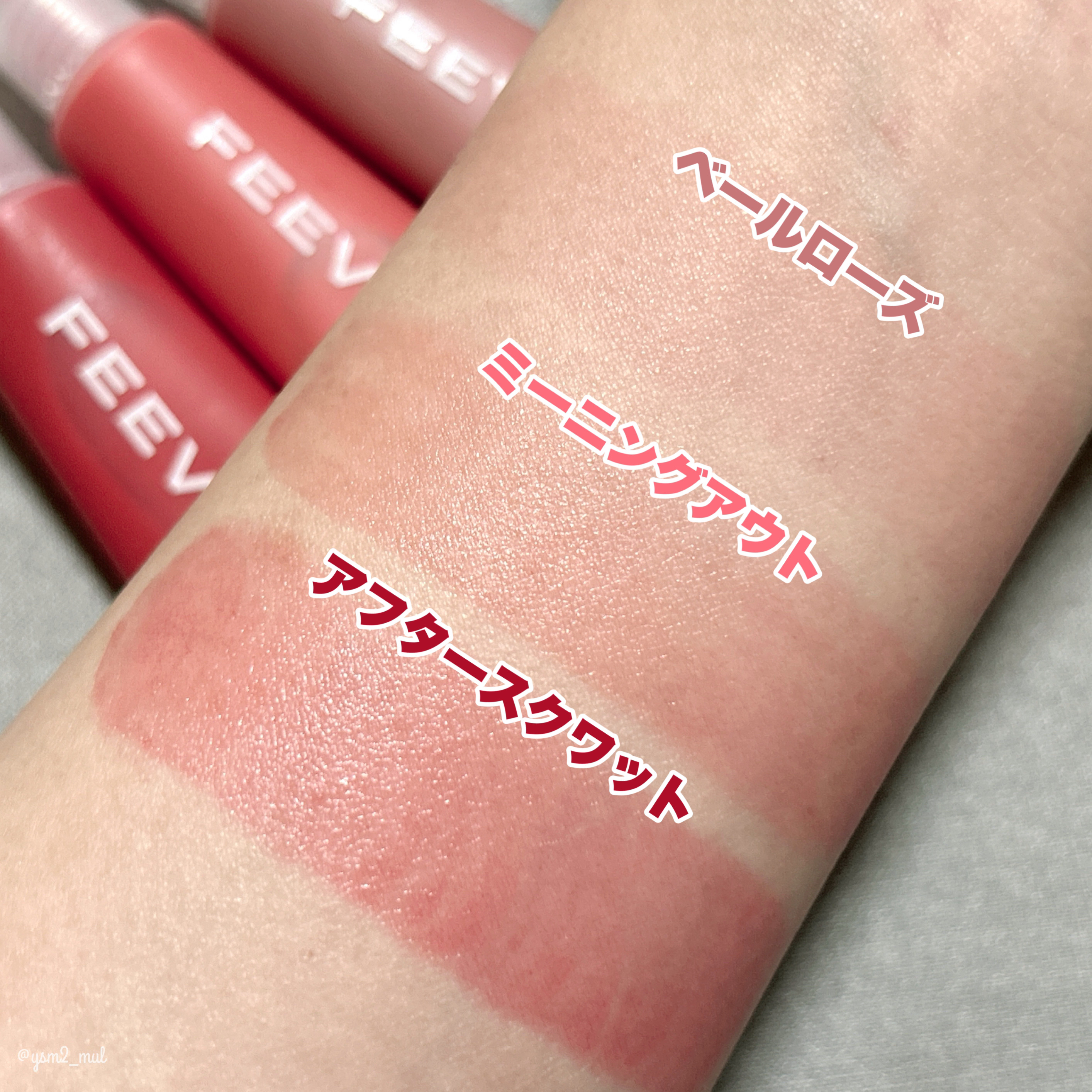 ✴︎FEEVHYPER-FITCOLORSERUMFEEVの人気アイテムカラーセラム。透明感のある美しい輝きで、頬に自然な血色感を与えてくれます。ハイパーフィットカラーセラムは、透明感があってお肌にキレイに馴染み、自然な血色感を演出してくれます。こちらはミニサイズでチューブタイプ。10ml入りなので少なめに感じるかもしれないですが一度に少量しか使わないのでかなり長く使えそう!いろんな色を使いたい方にはミニサイズがおすすめ。今回使用したカラーはミニサイズ限定カラーのVEILROSE、通常サイズにもあるAFTERSQUAT、MEANINGOUTです。VEILROSEはヌーディローズカラー、AFTERSQUATは蛍光に転ばない澄んだリアルレッド。MEANINGOUTはローズコーラル。スウォッチは色をしっかり見せたかったので濃く見えますが、実際は水彩画のようにほわっとした色づきに仕上がります。とってもかわいい🥹❤️❤️粉タイプのチークと違ってしっとり感があるので乾燥が気になる方にも良さそう!ベタっと色がのる感じではなく、透明感のある仕上がりなのでチークが苦手な方も使いやすいと思います。#PR#FEEV#フィーブ#韓国コスメ#韓国メイク#水彩メイク#ヴィーガンコスメ#ハイパーフィットカラーセラム#カラーセラム#リキッドチーク#ヴィーガンブラッシャー #水彩ブラッシャー #リキッドブラッシャー#ぽかぽか温もりアイテム