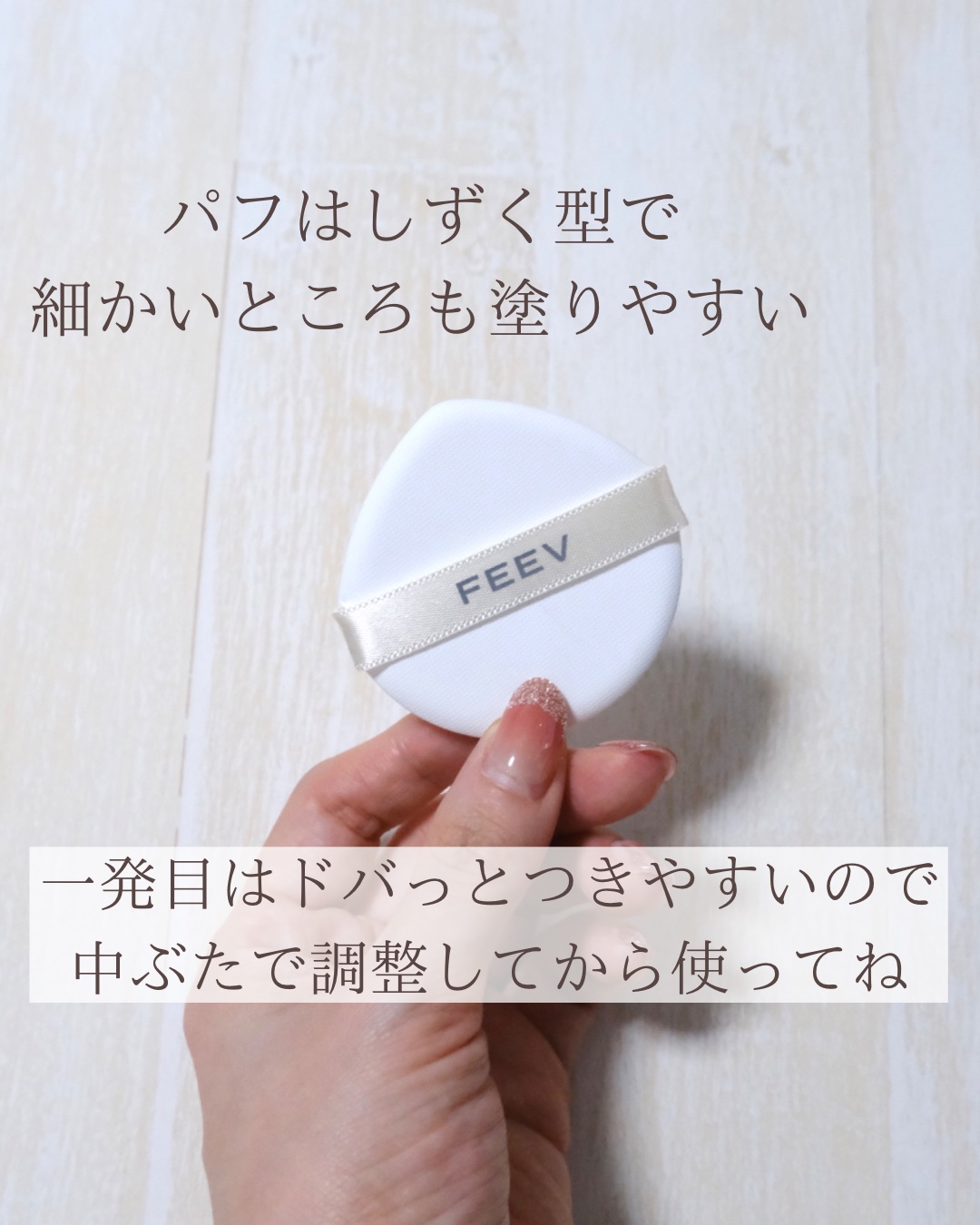 パッケージからも透明感のあるfeev。他のコスメも美しいので是非見てもらいたいと思う。 内側から発光するような美しい肌に。毛穴を塞ぐというよりも、肌にフィルターをかけたような印象でした。 この艶感は嫌いじゃないので、下地を考えつつ使っていきたいと思えるファンデーションです。
