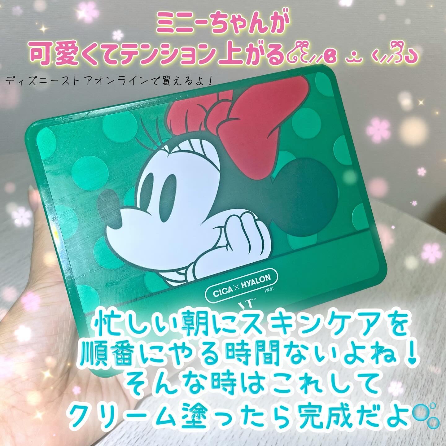 ほかのスキンケアをマスクパック1枚で完結💖 10分使用するだけでお肌に水分を与えてくれるのはもちろん、CICA成分入りだからゆるぎ肌も整えてくれる🎀 特におすすめの使い方は冷蔵庫IN❄️ ひんやりマスクパックにして目覚めも浮腫みも一瞬でさよなら👋 ミニーちゃんのデザインはディズニーストアオンラインで販売してるからぜひみんなも可愛いの使って朝からテンション上げてこ💖