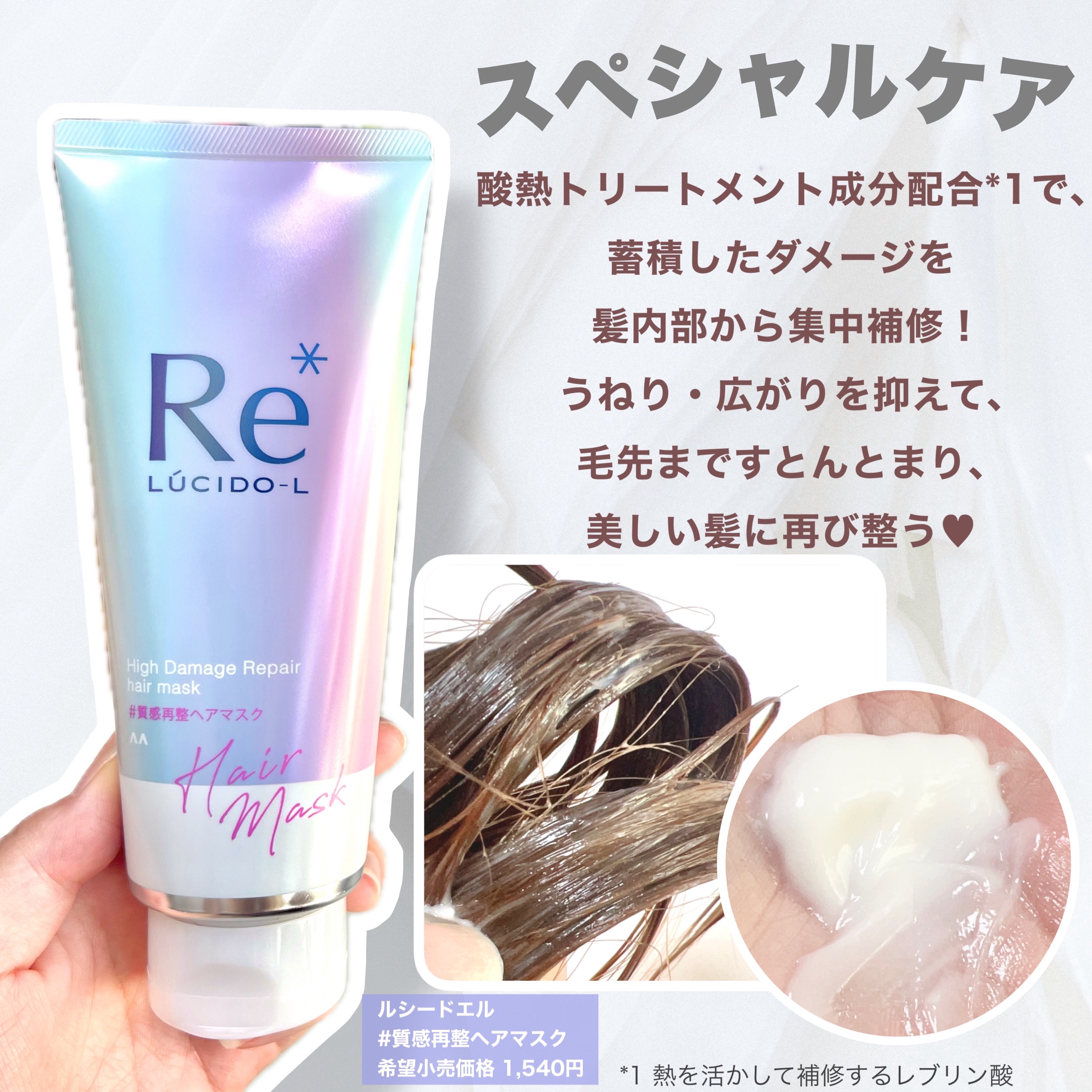 自宅でサロン級ヘアケア💫/ルシードエルから、サロン技術発想の酸熱ケア*1【Re*シリーズ】が誕生💆🏻♀️✨ RE=質感再整"美しさ"は取り戻せるをコンセプトにまるでサロン帰りのような仕上がりが自宅で味わえちゃうよ🫶◼︎︎ルシードエル#質感再整シャンプー¥1,540税込◼︎ルシードエル#質感再整トリートメント¥1,540税込◼︎ルシードエル#質感再整ヘアマスク¥1,540税込ヘアサロンで人気の施術である「酸熱トリートメント✨」に着目して、自宅でも酸熱ケア*1が行えるヘアケアアイテム🥹💖髪の内部に酸熱トリートメント成分=レブリン酸がしっかり浸透して、ヘアカラーや、ドライヤー・ヘアアイロンなどの使用による髪のハイダメージを集中補修するよ✨*1熱を活かして補修する(レブリン酸)配合普段パサつきを気にしちゃうドライヤーやヘアアイロンも、その熱によって補修効果が高まるから、毎日使いでさらに美しい髪が目指せるの☺️ヘアカラーを繰り返してまとまりがなく、広がっている私のダメージ毛も、サロン帰りのように"すとん"とまとまったから嬉しい🥹✨正直自宅でできるヘアケアって限界があるって思ってたけど、こちらは本当にサロン帰りのような仕上がりになった💫小さなお子さんがいて中々美容室にいけないママさんにもおすすめだよ☺️☝️全国のドラッグストア・スーパー・Amazonなどのオンラインショップで販売中✨☑︎髪がパサついて広がる方☑︎ツヤがなく、髪がまとまらない方はぜひ一度試してみてほしい🥹気になった方はぜひ、@lucidol_japanをチェックしてみてね🔍#PR#ルシードエル#酸熱ケア#酸熱トリートメント#ホームヘアケア#サロン級#ヘアケア#ダメージケア#トリートメント