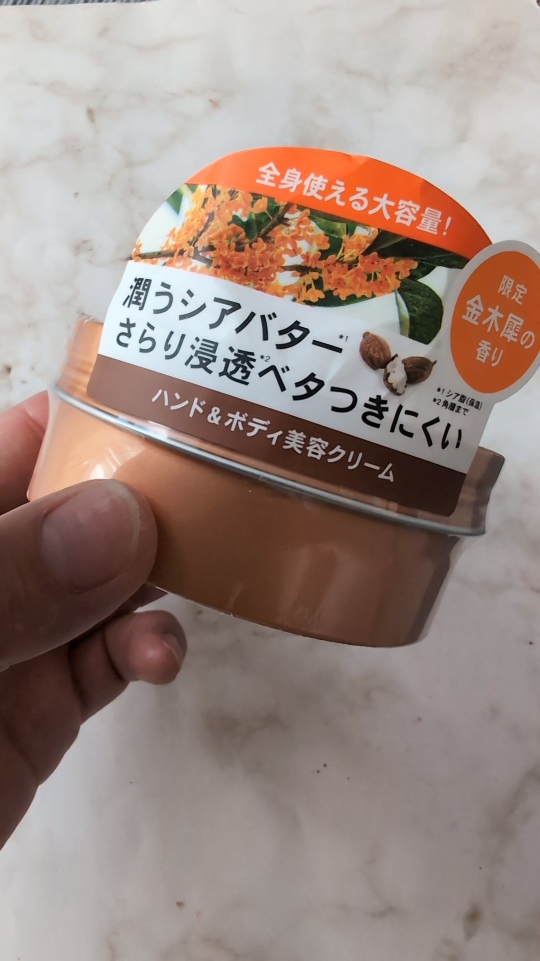 金木犀の香りが好きで気になり購入。 濃すぎない少し甘めの金木犀の香り。リアルな金木犀に近く好き。 柔らかいクリームで手にすっと馴染む。 リピートはあり。だが限定とあるのでまた出会えるかはわからない。 全身使える大容量! 限定 金木犀の香り 潤うシアバターさらりベタつきにくいハンド&ボディ美容クリーム