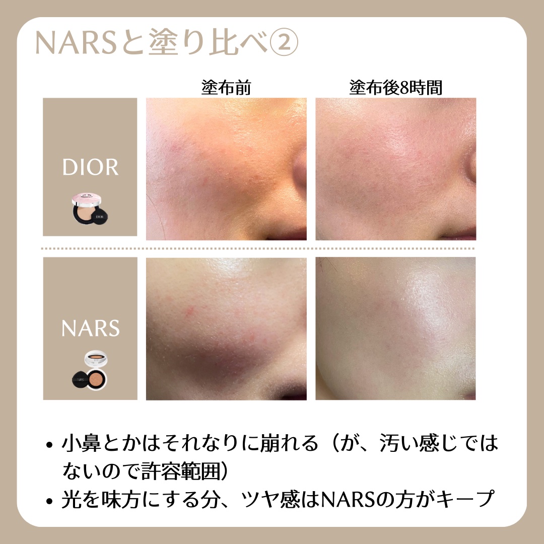 限界乾燥肌(化粧水が秒速で吸い取られる)なので、乾燥感こそ感じないのだけどDIORのツヤ感はあまり持たない。 NARS=光のツヤ DIOR=潤い(水)のツヤ 自分は限界乾燥肌なので、 (でもDIORのパケはみんなときめくんじゃないかな、可愛すぎる...♡)