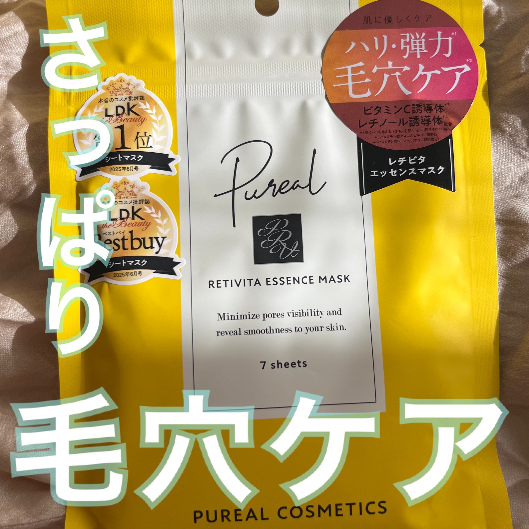 ◆ピュレアレチビタエッセンスマスク(7枚入)◎ターンオーバーの乱れやゴワついた角層を整え、毛穴の開きや乾燥によるくすみにアプローチ☝️✔ビタミンC誘導体APPS(パルミチン酸アスコルビルリン酸3Na)✔レチノール誘導体(パルミチン酸レチノール...