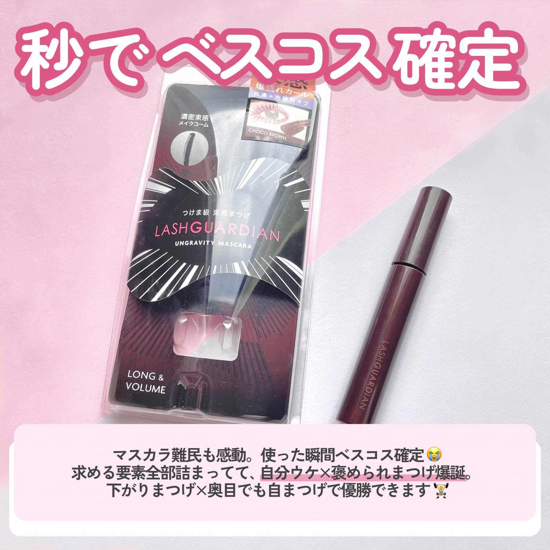 🗒️【全マスカラ難民へ】奥目・下がりまつげの最終兵器👁️LASHGUARDIAN〈ラッシュガーディアン〉アングラヴィティマスカラ 02チョコブラウン奥目・下がりまつげの全マスカラ難民に届けたい…!私的人生マスカラに出会ったかも😭👏噂に聞いてた"全マシ"爆盛れマスカラ、実物が想像以上に好きすぎて買ってからもうこれしか使ってない🫡詳しいことは画像で語ってるけど、長さ・カールキープ・ボリューム・束感…ほんとーーに欲しい要素がぎゅっとこれ一つに詰まってる💯これ使ってたらリアルにまつげ褒められて自分ウケも褒められまつげも両立した🫶(一昔前の美容垢構文みたい…😂笑)サムネはまつぱマスカラ下地もなしでまつぱも取れかけなんだけど、奥目×下がりまつげ代表(自称)的には寝落ちして24時間経ってもまつげが上を向いてるなんて奇跡に近くて!!さらにこれまでセパレートしかしてこなかったガチの束感初心者なんだけどそれっぽくできて感動🥲✨私は鬼不器用だからこそピンセット使ってるけど慣れてる方や器用な方、面倒な方はなしでもいけると思う🙆値段も1540円とプチプラなのにこれだけ優秀なのは本当に神!しっかり盛りたいマイブームに合いすぎてて言うことなしなんだけど、強いて言うなら色展開がもっと増えてほしい!前にあったらしい限定色のグレー系が定番化されたら即購入してヘビロテしたい🥲ぜひ参考になりますように🫶#lashguardian#ラッシュガーディアン#束感マスカラ#束感まつ毛#束感まつげ#束間まつ毛#マスカラ_お湯落ち#マスカラ_カールキープ#おすすめコスメ#コスメ購入品#プチプラコスメ#ドラコス#ブルベ夏#ブルベ冬#イエベ春#ブライトサマー#クリアウィンター#ブライトスプリング