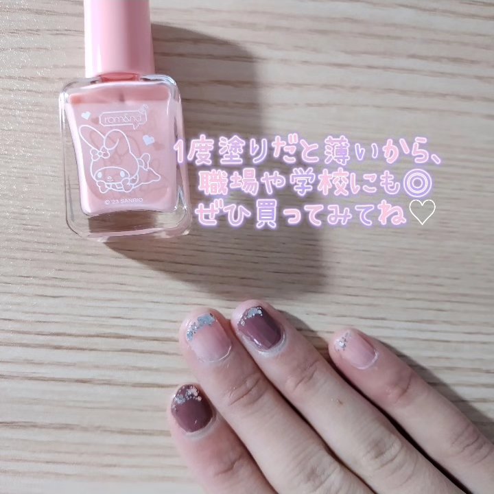 【使った商品】rom&ndマイメロディムードペブルネイル26ピンクシュシュ【良いところ】🌷落ち着いた色味なので、職場でも使える【イマイチなところ】🌷乾くのがあまり速くない気がしました🌷私の肌の色のせいか、あまり馴染まず浮く感じがしましたイエベのせいなのでしょうか、、?😅【どんな人におすすめ?】🌷シンプルに仕上げたい方🌷職場でも使用できるネイルをお探しの方!#ロムアンド#ネイル
