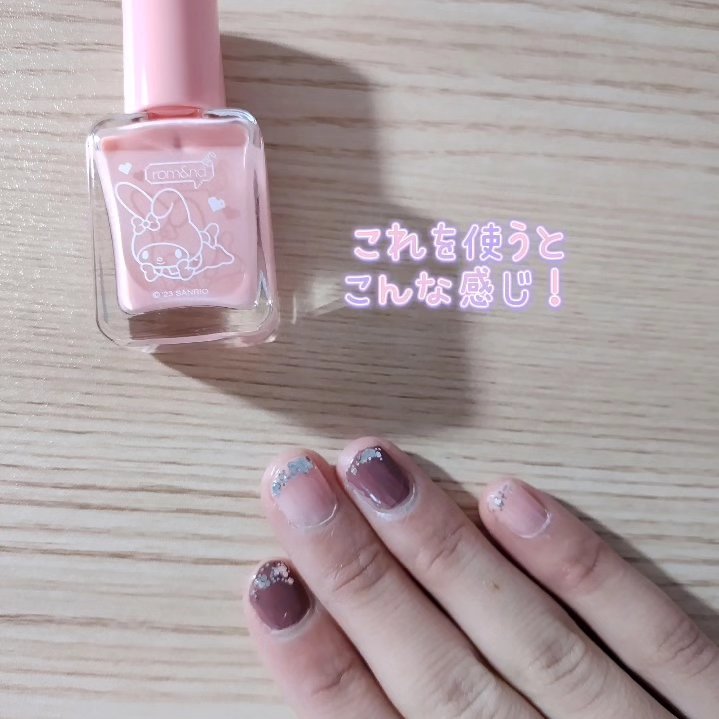 もかちゃんは、ピンク、キラキラのイメージで、このネイルは、#akiyui ちゃん真似っ子ネイル💅 ①キャンメイクカラフルネイルズ N29ミルクシロップ ②キャンメイクカラフルネイルズ N23シャイニーシルバー ③rom&nd マイメロディムードペブルネイル 26ピンクシュシュ ④パラドゥ リトルジュエリーコフレ PK スパークルルビー ⑤ACネイルエナメル 050ディープモーベット