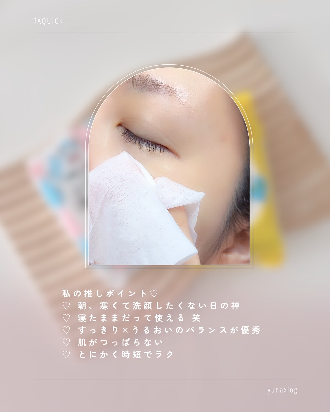 ー朝のバタバタ、これ一枚拭くだけ洗顔+化粧水🏷RAQUICK▫ふくだけ洗顔水シート▶商品概要1枚で「洗顔+化粧水」が同時に完了する便利シート🫧洗い流し不要・W洗顔不要で朝の洗顔や外出先、旅行中にも◎肌にやさしいシートで余分な皮脂や寝ている間の...