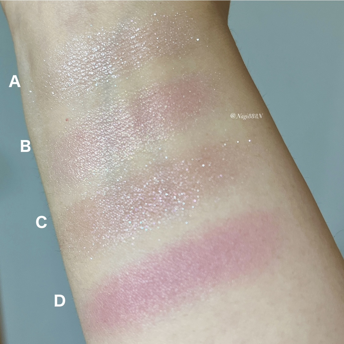 使い方で鮮やかな青みピンクにも、柔らかい白みピンクにも、右下を足せば落ち着いたローズピンクにも使えて重宝してます🥰❤️ 何より粉質が好きだからこれから他のカラーもチェックしていきたいな💕