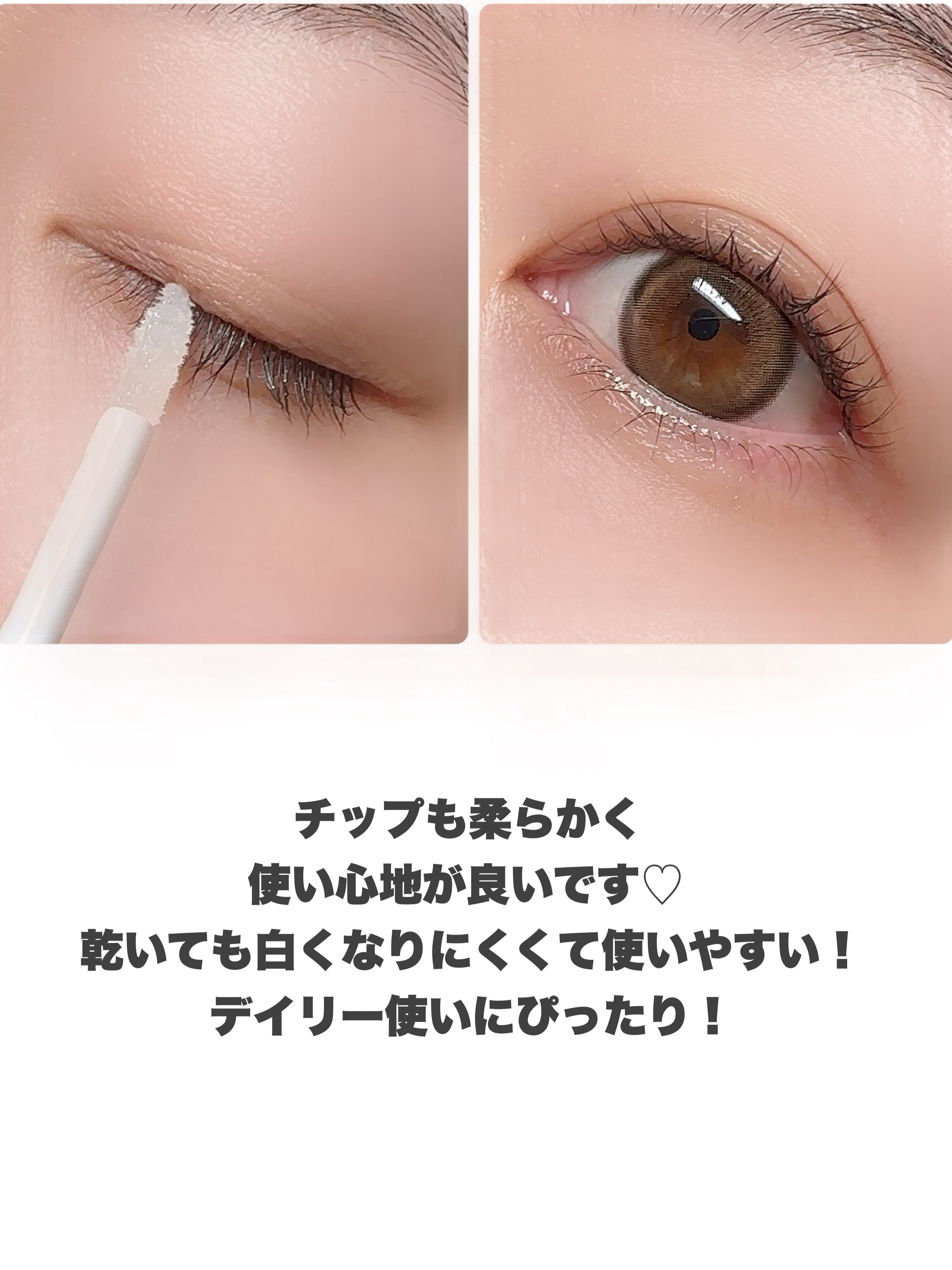 まつげにツヤとハリを与えながら補修するまつげ美容液です🩷 キャンメイクのまつげ美容液はチップタイプ! チップ先が細くなってるので、まつげの生え際にフィットして塗りやすいです。 まつげが弱々な私はまつげ美容液は毎日使うので、使い続けやすい価格でリピートしやすいのも嬉しい💕