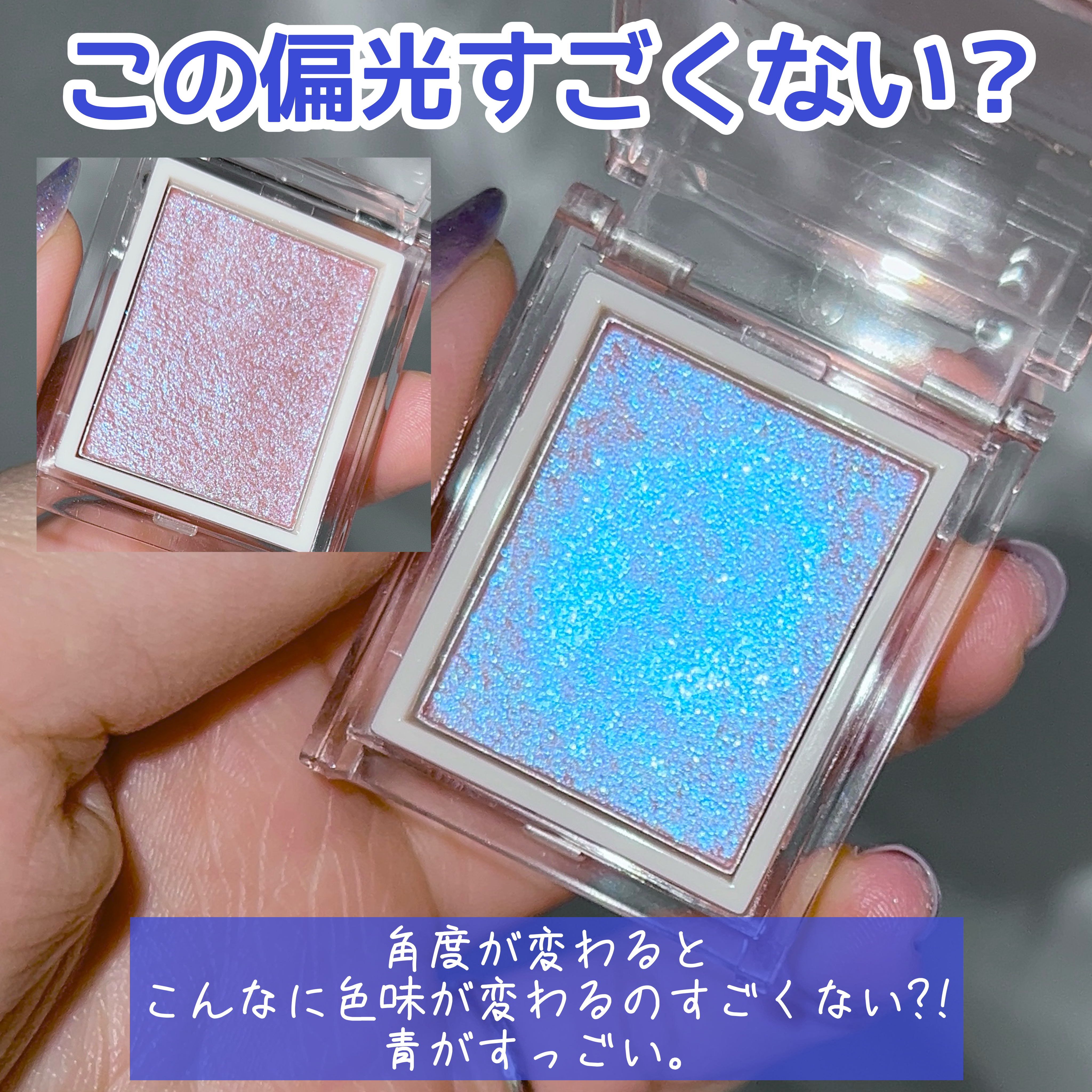 まるで宝石💎プチプラしっとり繊細ラメ✨️ 青や紫ラメ好きにおすすめしたい単色ラメシャドウ🩵 偏光繊細ラメがたまらない〜❣️ これひとつよりかは、普段のメイクに合わせて使うのが🙆🏻♀️ 私は濃いめのピンクメイクにこのラメ合わせたらめーっちゃ可愛く仕上がった😍