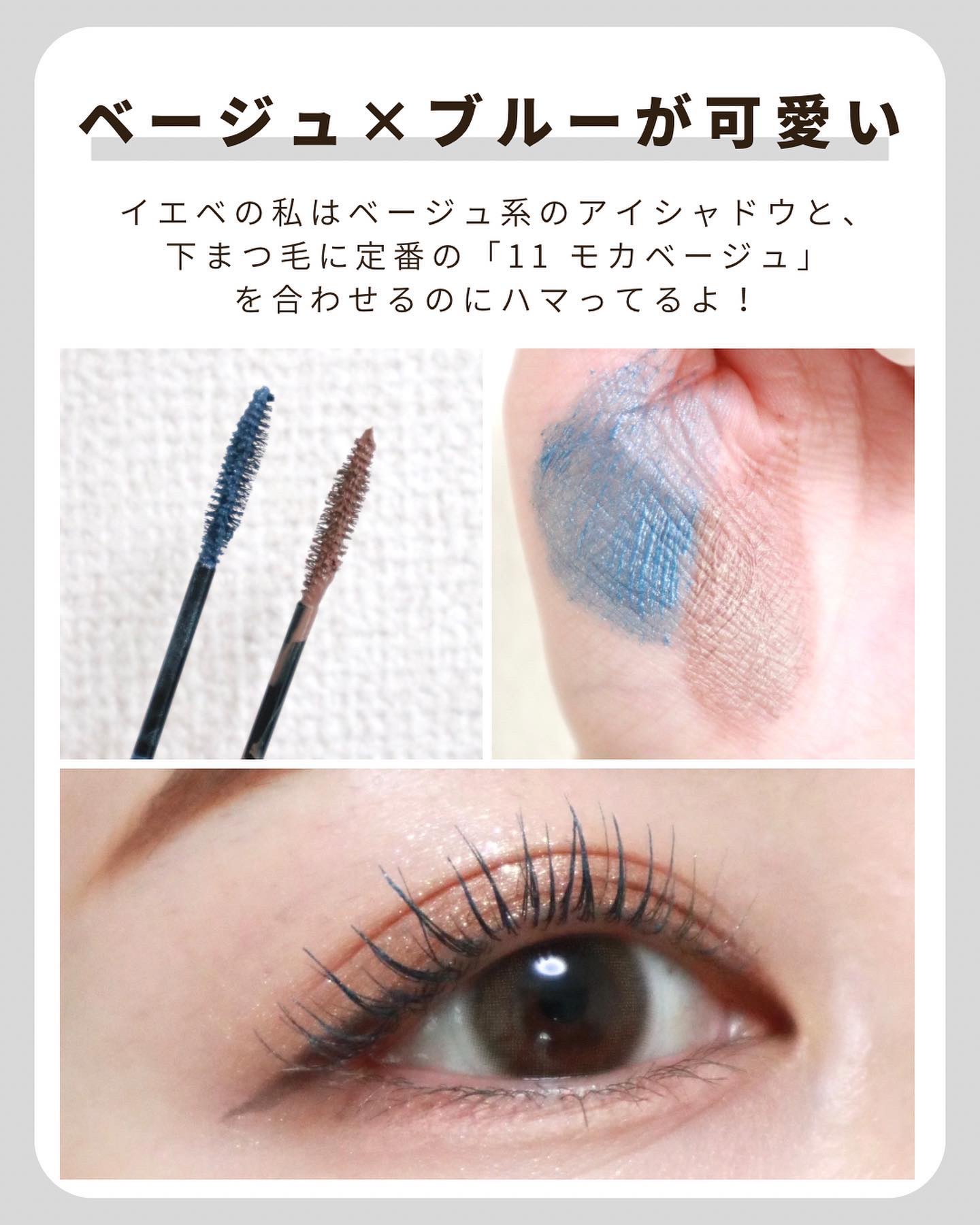 オペラのマスカラはさっと塗るだけで綺麗に色づいて、ダマなくつるんと仕上がるよ♡ カラーマスカラだけど、パキッとせず自まつげのようなツヤ感があるからさりげなくカラーを取り入れられる✨ 今年の秋の新色「10 スモーキーブルー」がとにかくツボ♡ ドイエベだからブルーって嫌煙しがちなんだけど、このブルーはグレーが混ざっていて落ち着いた雰囲気に見えるから使いやすいの! 秋の限定色も可愛いから是非チェックしてみてね🌈
