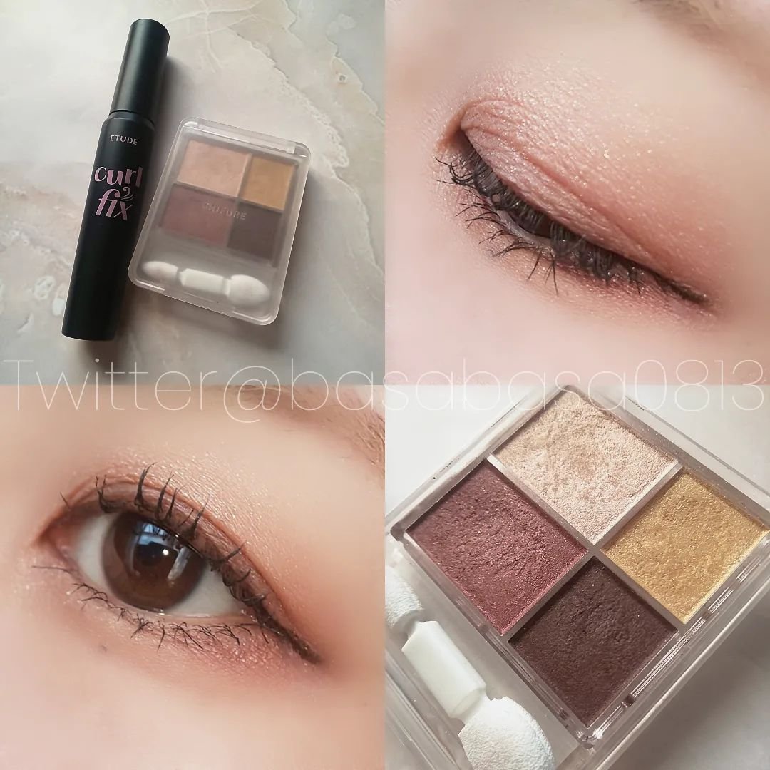 #今日のメイクちふれのグラデーションアイシャドウ、36番を使ってアイメイクしたよン!パープル系ブラウンでとんでもなく可愛いパレット🐴紫とゴールドのキラキラがアタイの大好きなヤキ-モカラー過ぎるんヨ(個人的感想です)🍠マスカラはこれまた大好きなetudeのカールフィックスマスカラ!