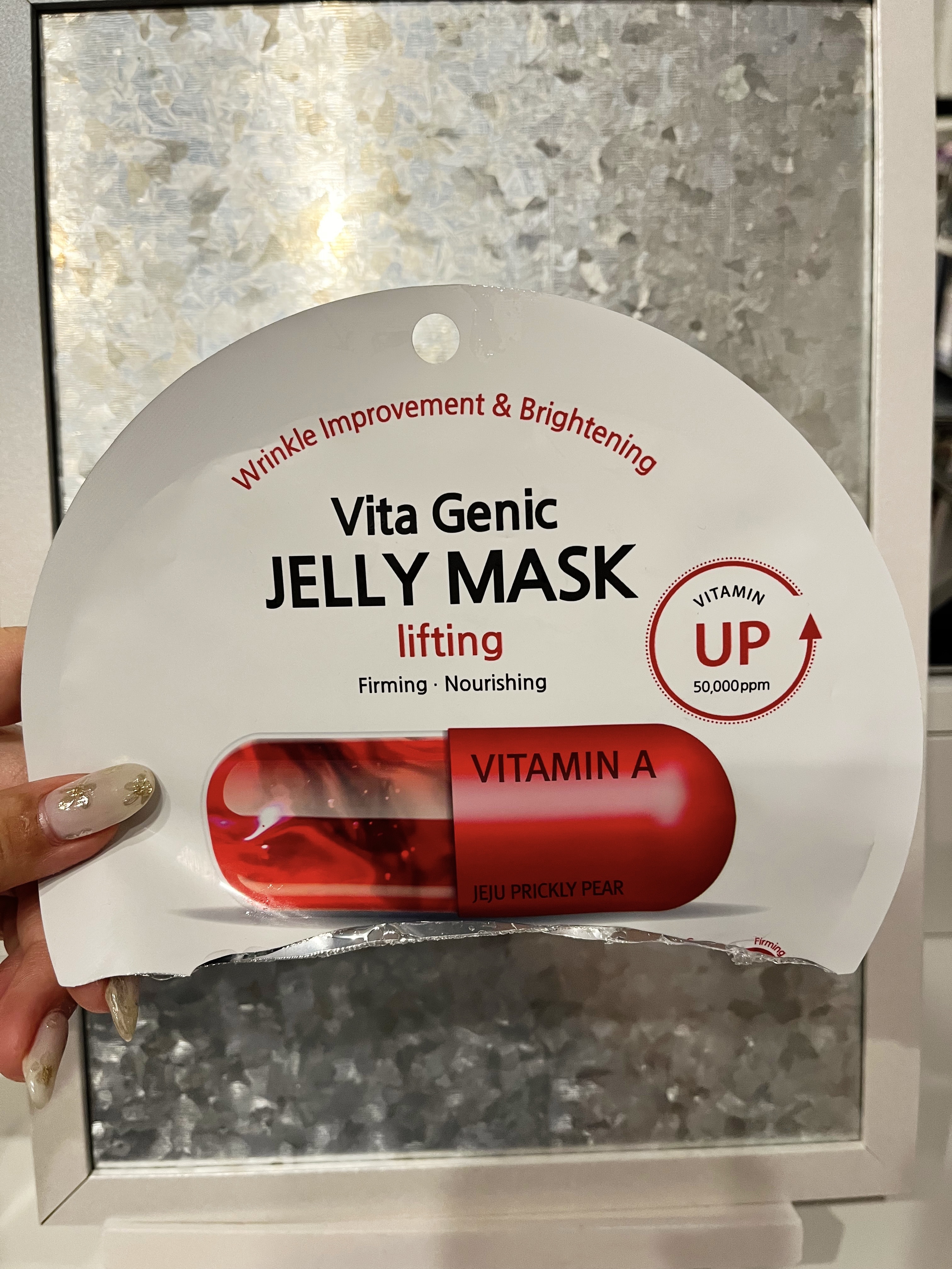 【使った商品】BANOBAGI(バノバギ)ビタジェニックゼリーマスクLifting【商品の特徴】ビタミンコンプレックスとコラーゲンをたっぷり配合した、ゼリー状美容液のリフティングマスク。ハリ・弾力ケアに特化していて、乾燥やハリ不足が気になる肌をうるおいで満たし、引き締まったツヤ肌に導く✨ぷるぷるのジェリーが肌に密着して、うるおいを逃さずしっとりキープしてくれる。【良いところ】ゼリー美容液がぷるぷるでもちっと密着保湿しながら肌が引き締まるような感覚使用後はつるんとしたハリ肌にシートが薄くフィットして液ダレしにくい【どんな人におすすめ?】乾燥やハリ不足が気になる引き締まったツヤ肌を目指したいもっちりゼリータイプのマスクが好き保湿とリフトケアを同時に叶えたい💡使ってみた感想💡開けた瞬間からぷるぷるのジェリーにテンション上がる✨肌にのせるとひんやり密着して、外したあとはもっちりつやつや!フェイスラインのキュッと感もあって、夜のご褒美ケアにぴったりでした💛