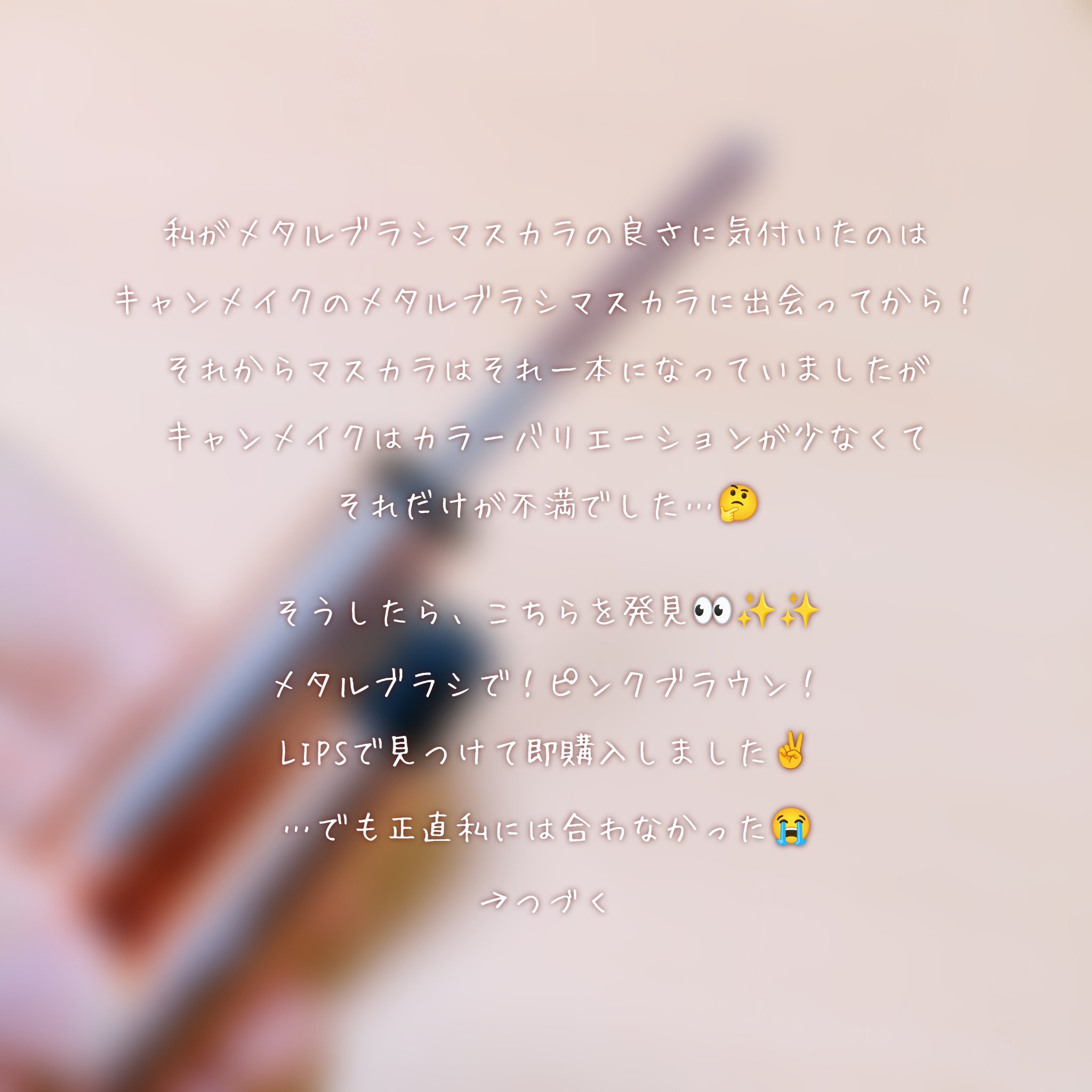 今までメタルブラシマスカラはキャンメイクのブラックを使っていたのですが、淡い色味が欲しくなり購入圧倒的にこちらの方が塗りやすく感じます!!他の色も追加で購入するか検討中です。...