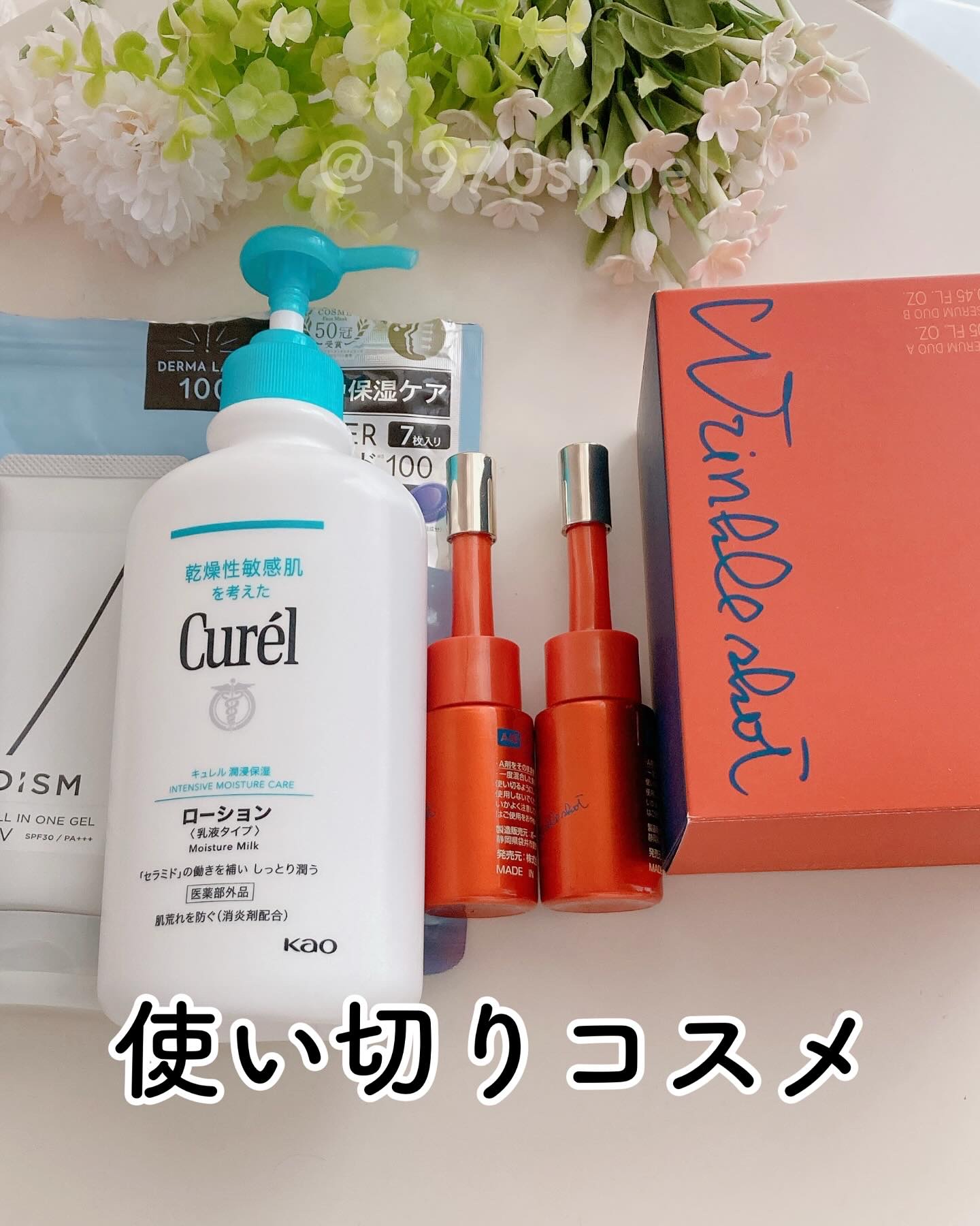 #使い切りコスメ🩷ポーラリンクルショットメディカルセラムデュオとうとう無くなってしまった🥹PRで頂き、チビチビ使いそうなところ、1ヶ月で使い切るという制約のある美容液だったため、ガッツリ使えたよ😊先行美容液タイプで、翌朝の肌にハリを感じる使用感✨また使いたいなぁ💕🩷キュレルかお・からだ用ローション他社の製品も気になるけれど、「かお」もOKなこういうタイプの乳液って無いんだよね😌お風呂上がりは、とりあえず顔にキュレルを塗ってから風呂掃除しています。掃除している間に乾いちゃうからさ〜😆🩷DISMUVオールインワンジェルPRの頂きもの。UV機能付きジェル、これ便利でいいのよね。あんまり化粧せずに出かける時とか。自腹購入するか?と思うけれど、とりあえずまだ買ってない😊いつか買うかも。🩷ダーマレーザー セラミド安定のダーマのセラミド😊無くなると買い足してる💕乾燥肌には必需品✨#コスメレビュー#スキンケア