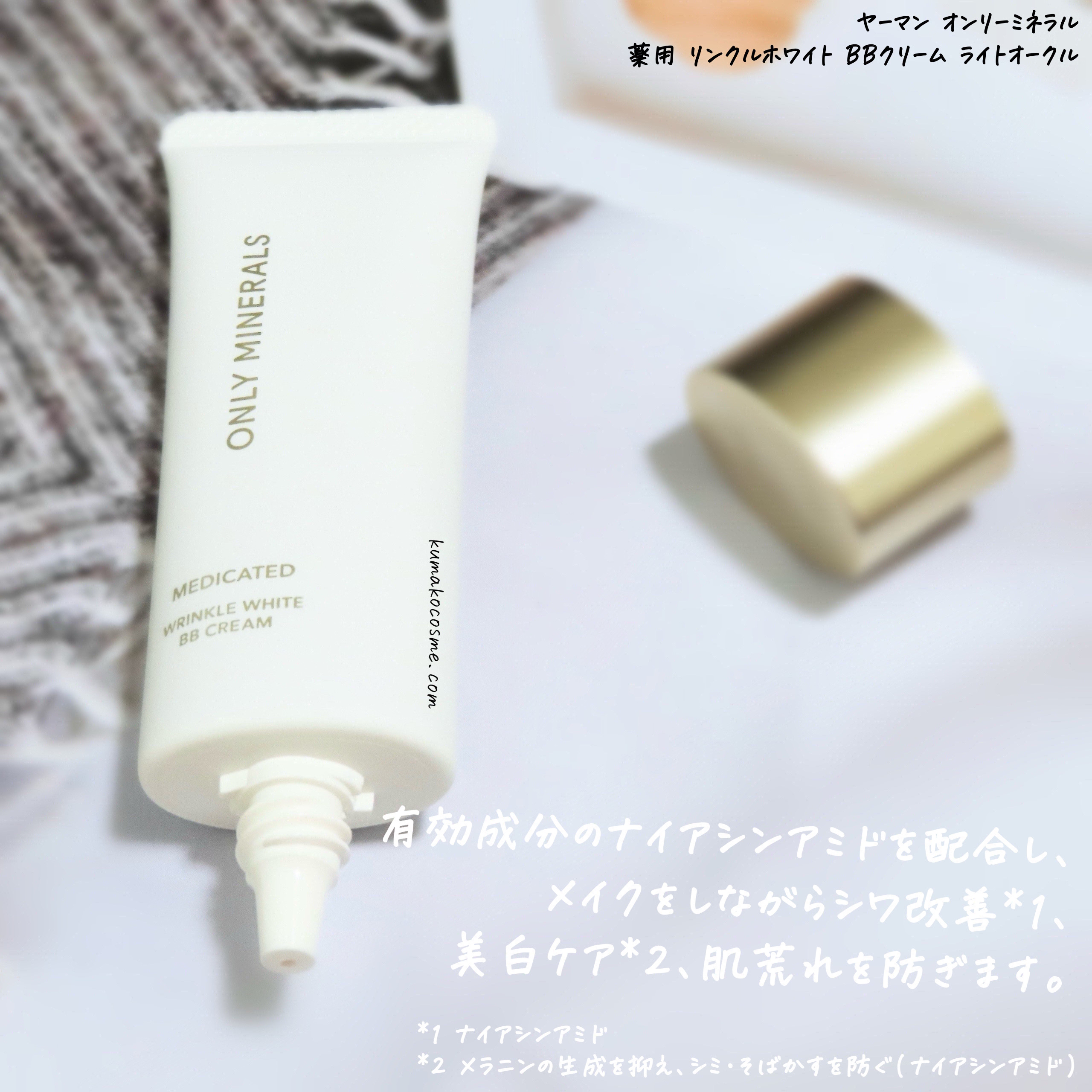 メイクしながらシワ改善💕 ONLY MINERALS 薬用 リンクルホワイトBBクリーム【医薬部外品】 有効成分ナイアシンアミド配合(シワ改善) ○石鹸落ち ツヤ肌仕上げ✨ 重くない使用感が⭕️
