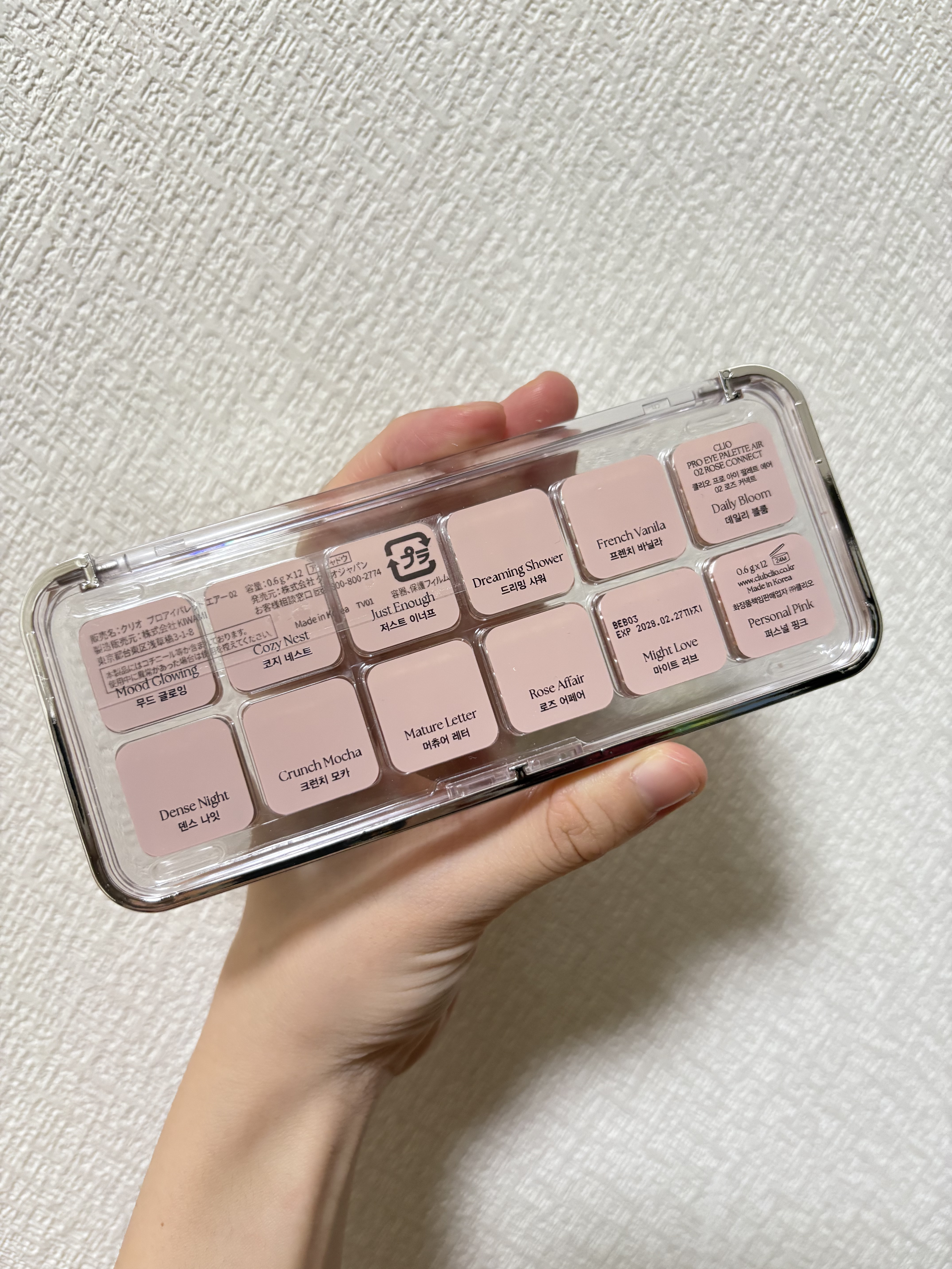 CLIOクリオプロアイパレットエアー02RoseConnectローズコネクト────────────公式だとイエベ春向けとなっていますが、ブルベ夏さんでもよく似合うと思いますし、ニュートラルピンクがお好きなら大満足だと思います💞使うカラーによってナチュラルにも華やかにもできるので、かなり重宝しています。毎日メイクは、ほとんどこれを使っています!粉飛びもなく発色が良いので、ブラシで少しずつ重ねていくのがおすすめです。締め色が程よい濃さで、アイラインの下書きや、ぼかして馴染ませることができるのも良いです👍️上段一番左を上瞼、一番右のラメを涙袋、下段左から三番目のカラーをチークとして塗るのが、とても可愛くてお気に入りです🥰#CLIO#クリオ#ドラコスこれ買って
