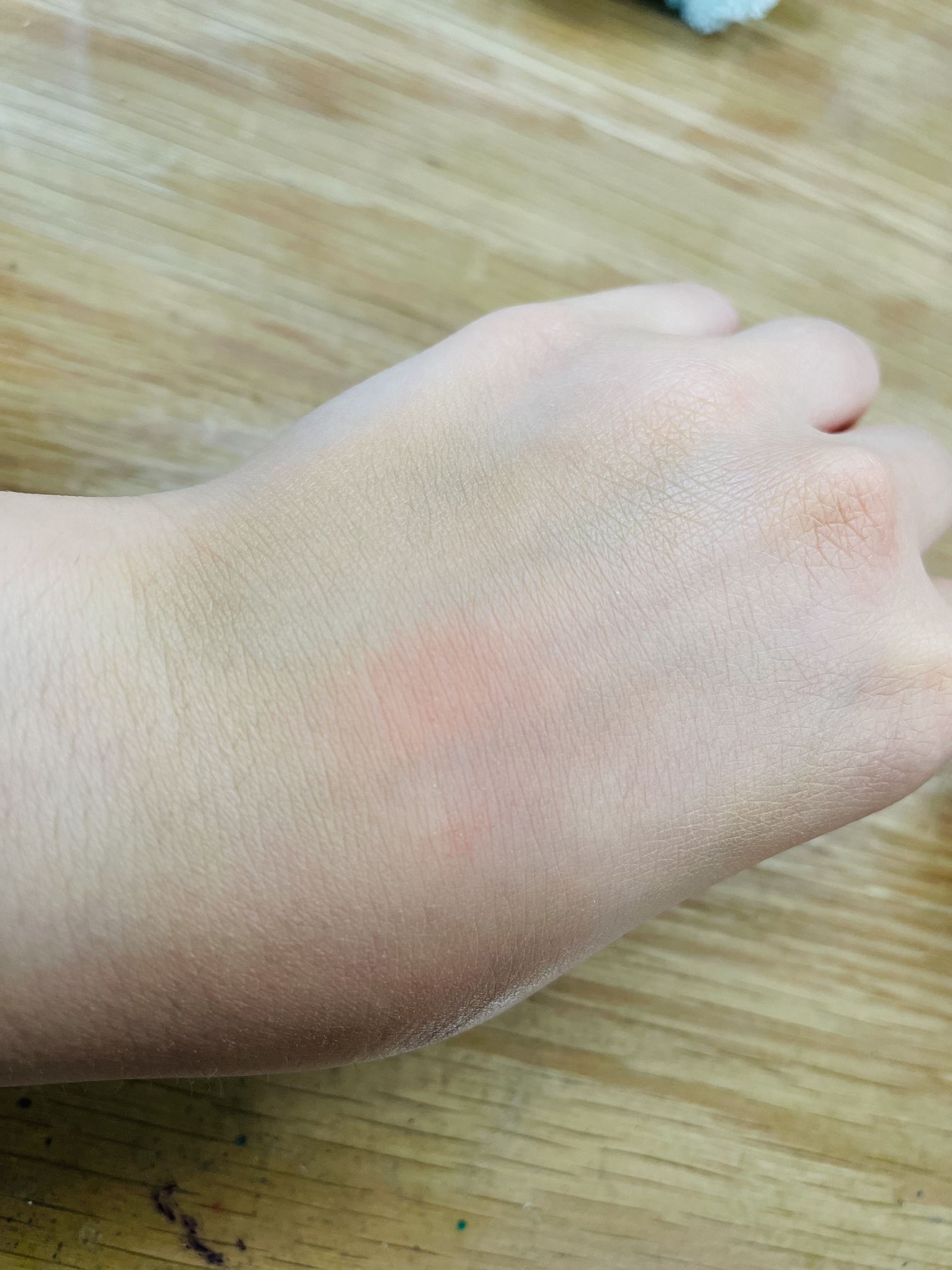 見た目はとてもかわいいピンク色(๑ᴖ◡ᴖ๑)♡♡ ふわっと淡いオレンジ色のような感じに発色しました〜〜 とてもかわいいお色味です(๑ᴖ◡ᴖ๑) 肌が荒れることなく、マスクをしていても色持ちはいいかな〜という印象です(๑ᴖ◡ᴖ๑)♡♡