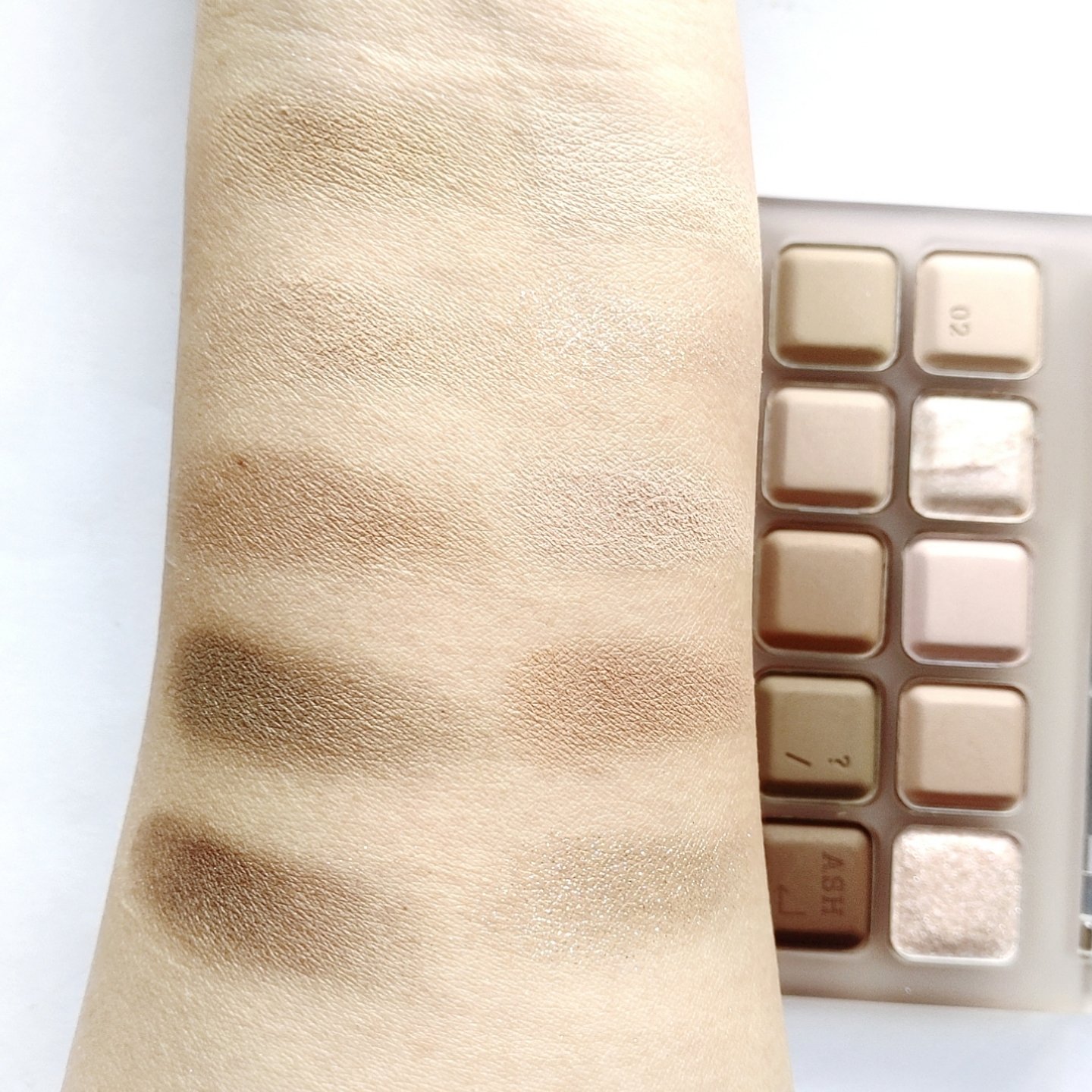 柔らかくて温かみのある色が冷たい心を温めてくれる、ソフトなシナモンアッシュ 霧の中からぼんやりと見える月のように奥ゆかしい雰囲気を漂わせるモーブアッシュカラー セピア加工をしたようにやわらかい印象のカーキがかったニュートラルアッシュ 発色はやや弱いんだけど、重ねて塗っていけばちゃんと発色してくれます 1度塗りががっつり発色するわけじゃないからこそ、色の濃さの調節はしやすいから初心者さんでも使いやすいと思う この3色だと、#01がイエベカラー、#02がブルベカラー、#03がニュートラルカラーになるけど、ブルベ夏の私でも#01は使えるので、好きなカラーを使うのが1番だと思います パレットのサイズは一般的な10色アイシャドウパレットと比べて小さめ 全8色あるので、自分の好きなカラーを見つけてぜひ試してみてください