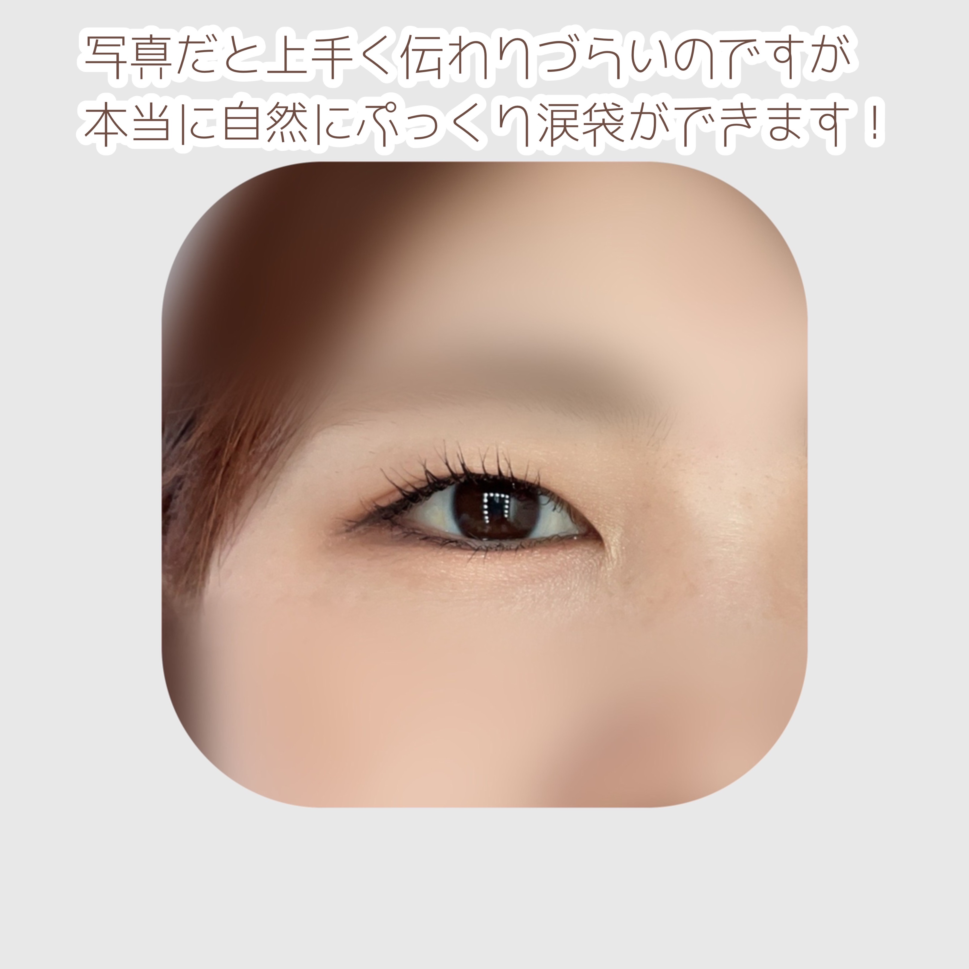 涙袋の線をひくのに使っています。 今まではセザンヌのピンクを使用していましたが、そちらよりも細いので自然に描けます。 わざとらしくならないので良いなと思いました。 価格もとっても安いのに落ちにくさもありました。 細くて軽いので持ち運びにも便利です。 下の粘膜のラインが崩れたときのお直しにも使えるので、1本ポーチにいれておくと役に立つと思います🫶