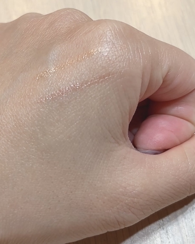 再販や定番化になったらぜひゲットしてほしい…! 肌馴染みのいいベースカラー+大きさの異なるパール配合 1日(約10時間)経っても乾燥ジワなし、色もラメもしっかり残ってキラキラしてた!