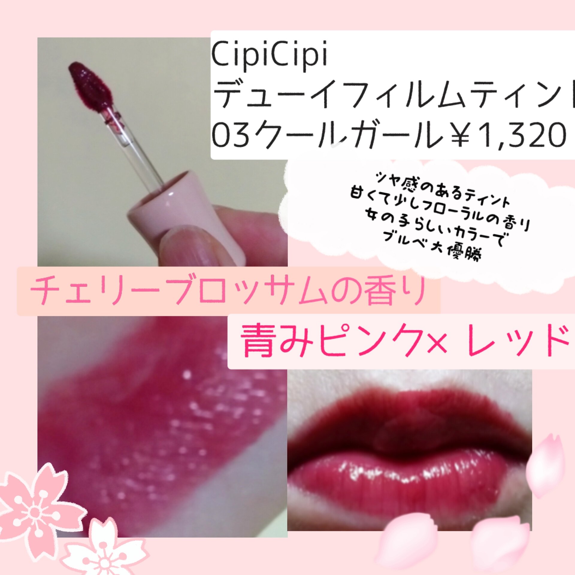CipiCipiティントリップ🤍🤍🤍🤍🤍🤍🤍🤍🤍娘💗の感想『03クールガールぶどうピンクカラーでうるおうしブルベにぴったりカラー最近はずっと使ってる💗』#ビジュ優勝コスメ#娘のシピシピ※個人の感想です#CipiCipiデューイフィルムティント...