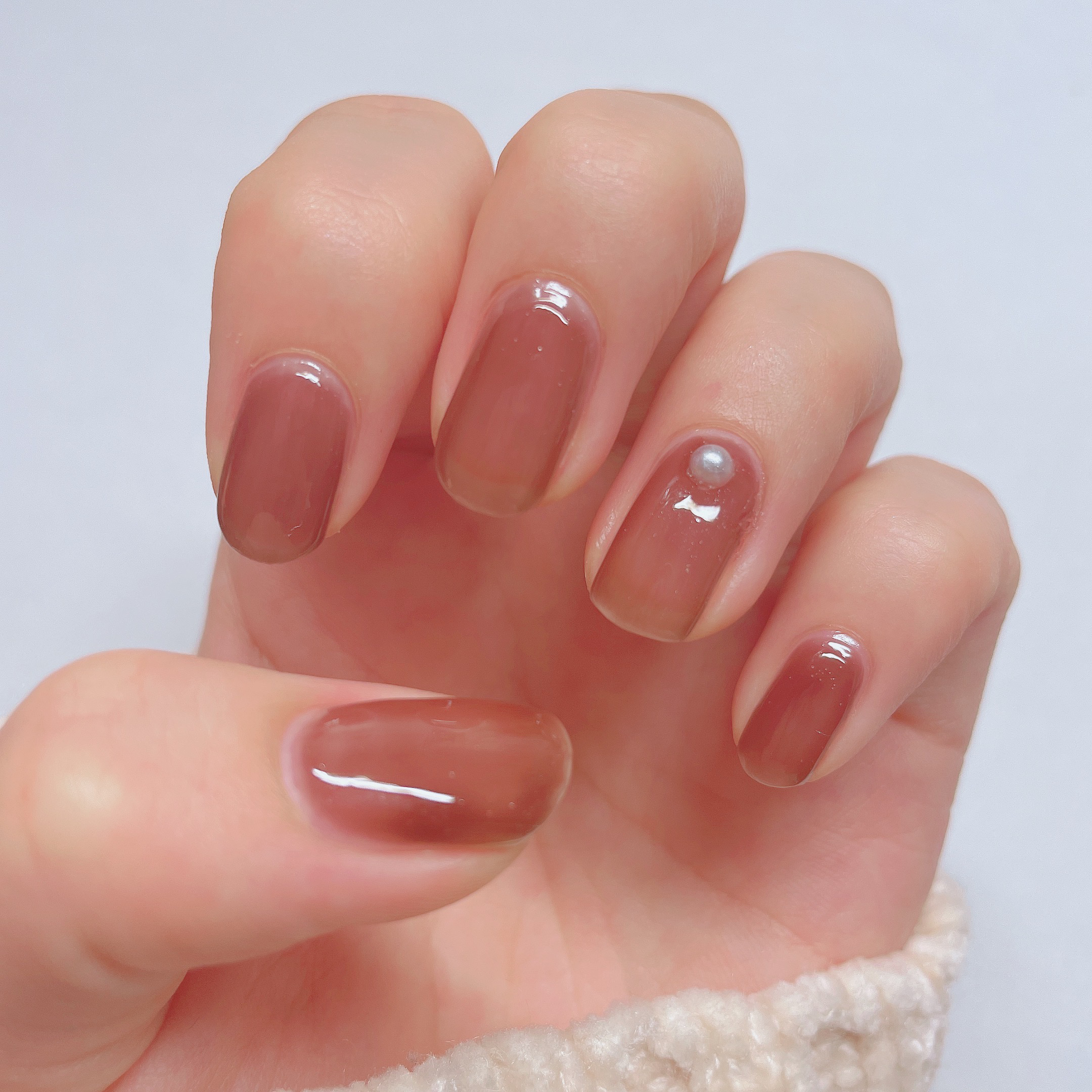 水あめみたいなちゅるんとしたツヤ感がとても可愛い♡! ラウンドカットで塗りやすいし速乾なのありがたい! 秋はカヌレブラウンやマルーンみたいなカラーが好きだ(*^▽^*)