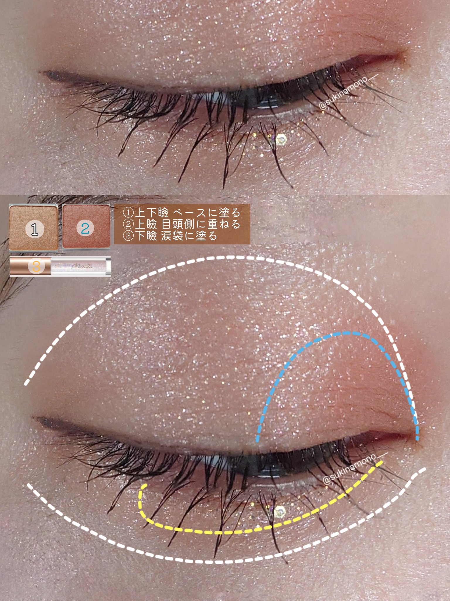 💎宝石級にきらめく可愛すぎるキラッキラグリッター💎MilleFéeステラグリッターライナー01スピカ/02ミモザ/03ファーストスター04ミラ/05スターリースカイ/06コメット全6色をMilleFéeさんよりいただきましたので全色レビュー✒️ᝰꪑ✔まるで星空のようなきらめきで目元を彩るグリッターライナー✔繊細なラメ感で瞼に密着しラメ飛びしにくいテクスチャ✔植物由来保湿成分*配合でメイクしながら目元ケア*ヒマワリ種子油、ムラサキバレンギクエキス、アボカド油●実際に使用した感想瑞々しくなめらかな塗り心地で使いやすいグリッター。ブラシの先は細くなっていて、狙ったところにピンポイントで付けられるしブラシを少し倒して瞼にのせると広くラメを馴染ませることも出来る◎私は上瞼に使う時は少し指にとって指で馴染ませぼかして使用涙袋に使う時はブラシを使用し細かい部分に塗布して使用しています。ベタベタしないけど乾いてもカピカピにならずに使えるし、しっかり密着してラメ飛びしづらくてかなり使いやすい✊🏻̖́-朝メイクしても夜まで涙袋のラメが消失しないので涙袋メイクに使うとメイク落とす時までしっかり涙袋が存在している◎色によってホロの大きさもそれぞれ違っていて、しっかり大粒ホロでキラキラに輝く主張強めなものもあれば繊細で粒子細かめでキラキラだけど上品にきらめくものもあってどっちもめちゃくちゃ可愛くてたまらん……😭🫶🏻❤️私がとくにお気に入りなのは肌馴染み抜群なミモザと、パープルの色味が可愛すぎるコメット!全色可愛すぎますが、この2つはとくに使いがちかも🥺ぽちっと保存していただくと励みになります☝いつもありがとうございます🙏❤️各種SNSもよろしくお願いいたします!Twitter☞@sukinamono___LIPS☞@sukinamono___Instagram☞@sukinamonowosukinadake___※画像は無断転載禁止※#PR#ぷっくり涙袋マニュアル