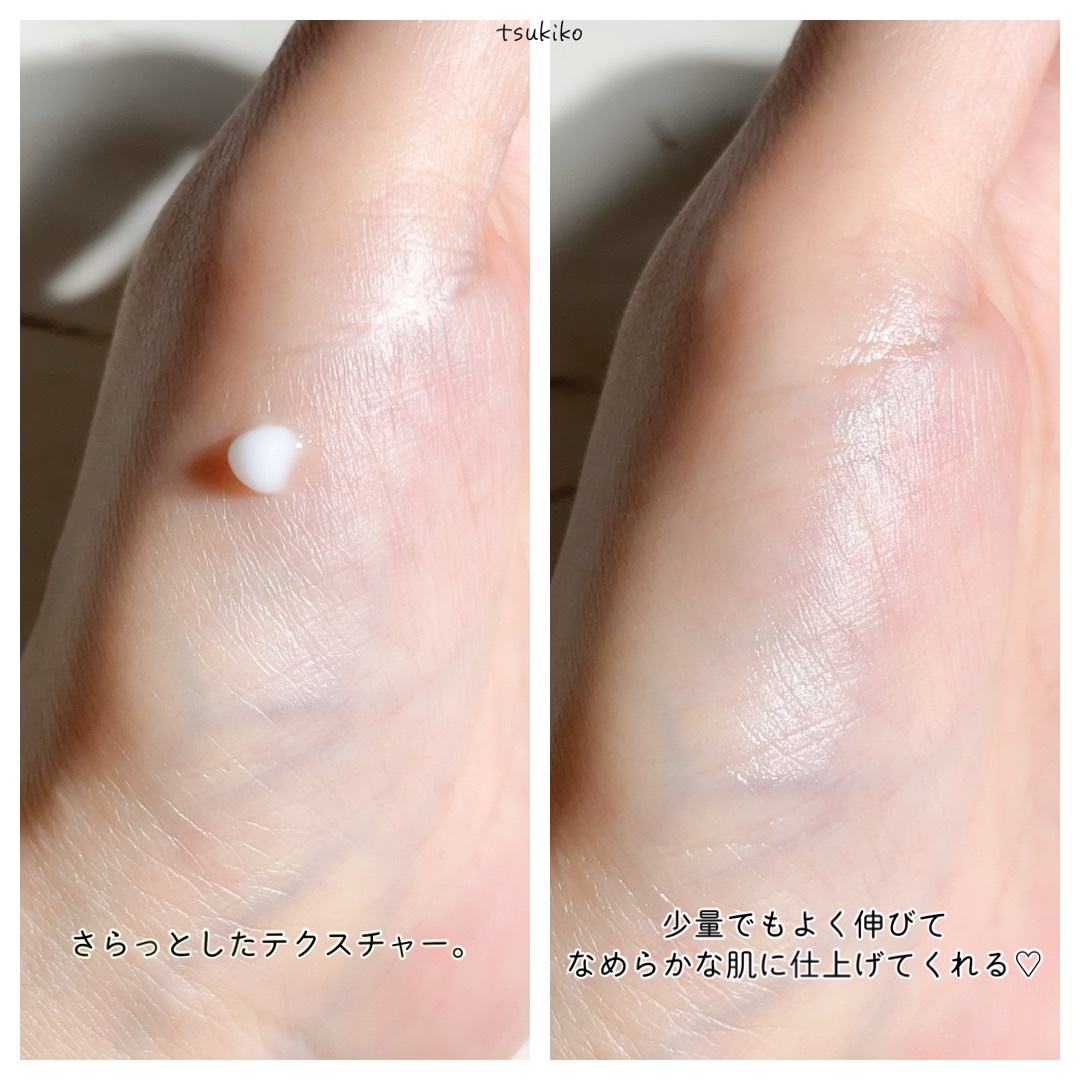 本当に少量で伸びが良すぎてびっくり! テクスチャーは保湿力のあるクリームですが塗布して肌に馴染ませていくうちにサラッとした肌触りになり、毛穴の凹凸を埋めてくれます。 涙目になりやすい私ですがアイライナーが滲まなくなりました!!! そしてほうれい線も目立ちにくくなりました!