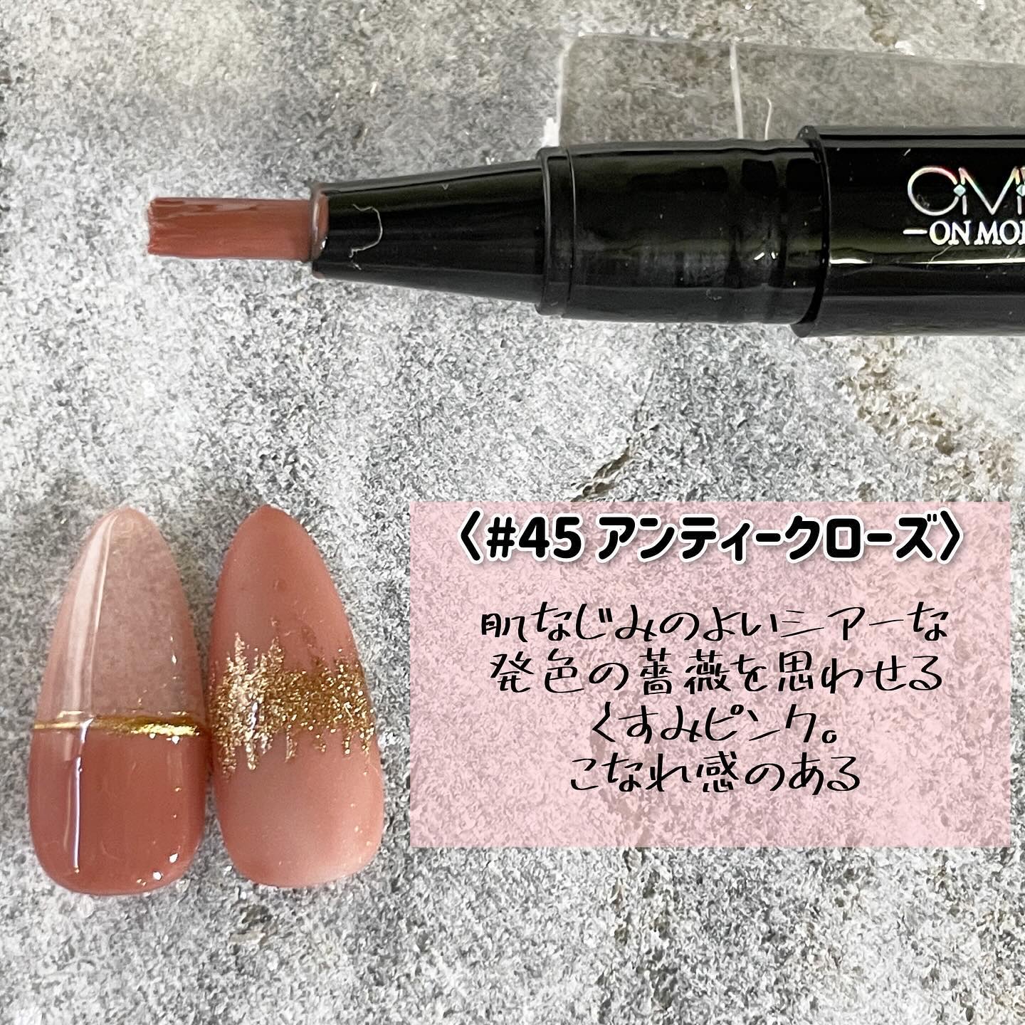 CharmStickGel2023秋新色から3本を使って、落ち葉色ニュアンスෆ˚*パーツ載せるだけの時短ネイルにしたけれど、ゴールドが合うので、金箔やラメ、フレンチやうねうねなどのトッピングもオススメ♩¨̮⠀⠀⠀44ローマスタード45アンティークローズ46チークブラウン⠀⠀✼••┈┈┈┈┈┈••✼⠀⠀・ペン感覚で塗れる・下準備不要、塗って硬化するだけ・10日間キープ・パラペン、タルクフリー・リムーバー不要で剥せるのでお子さんにも・オールインワンなのでトップも不要・2.5g両手2度塗りで10~15回使用可能・¥1,320税込⠀⠀✼••┈┈┈┈┈┈••✼#セルフネイル#ジェルネイル#チャームスティックジェル#OMD#44#ローマスタード#45#アンティークローズ#46#チークブラウン#提供