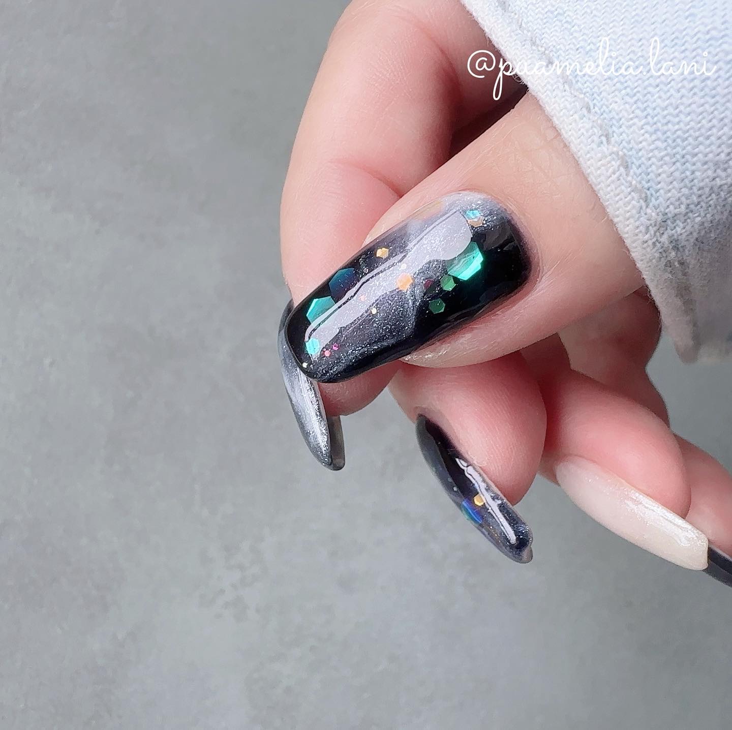 CharmStickGELウィンターコレクション2023アンバサダーとしてモニターさせていただきますෆ˚*⠀⠀今回はその中から2色をご紹介1~3枚目ニトリライト4~6枚目曇天の自然光親指~中指2色でニュアンスにしてホロ追加⠀⠀50クリアネイビートーンが低く都会的で黒に近い色ながら、黒まで重くなくカッコよくキメられる⠀☆小指2度塗り⠀⠀51スターリットスノウクリアネイビーと合わせたら素敵な世界観が生まれそう!とチョイス♪細かいラメが沢山入っている乳白色で、月夜に照らされた雪のように静かに輝く❄️☆薬指2度塗り⠀✼••┈┈┈┈┈┈••✼⠀⠀#チャームスティックジェル・ペン感覚で塗れる・下準備不要、塗って硬化するだけ・10日間キープ・パラペン、タルクフリー・リムーバー不要で剥せるのでお子さんにも・オールインワンなのでトップも不要・2.5g両手2度塗りで10~15回使用可能・¥1,320税込⠀⠀✼••┈┈┈┈┈┈••✼#セルフネイル#ジェルネイル#チャームスティックジェル#OMD