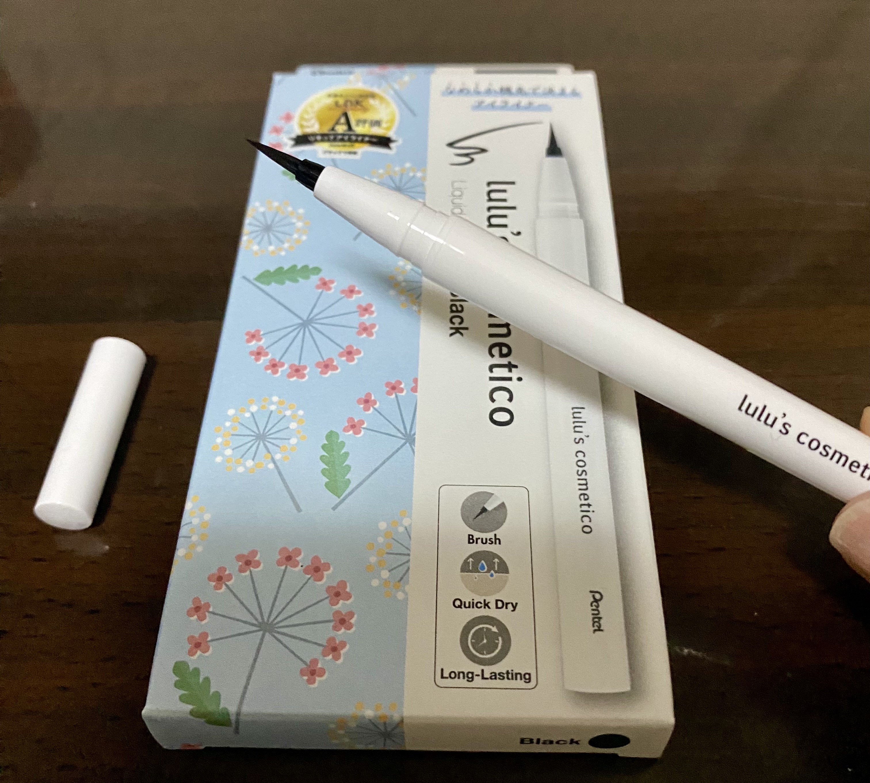 lulu'scosmeticoリキッドアイライナー文房具メーカーのぺんてるさんのアイライナー!筆ペンの技術を盛り込んだ商品ということで期待大✨パッケージはかわいくて、思わず手に取りたくなる箱です❤️中の商品はとでシンプルでした^_^描きやすさ...