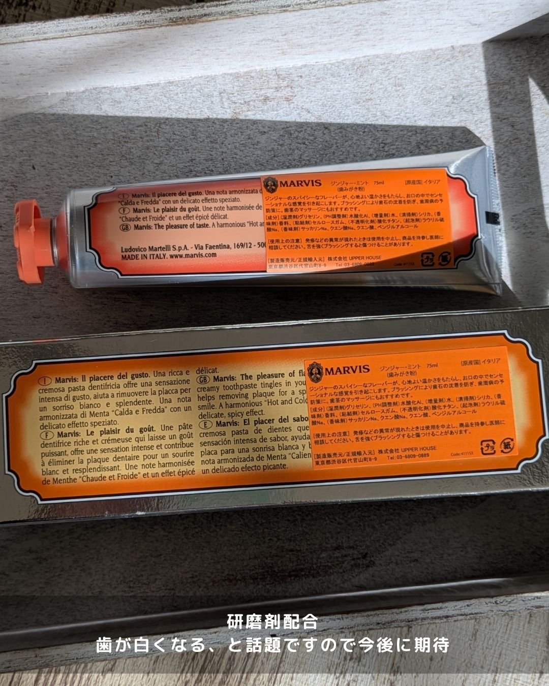 \ピリッと刺激的に朝目覚める/MARVISJAPAN(マービスジャパン公式)様より頂きました🎁MARVISジンジャー・ミント75mL・イタリアのフィレンツェ発の歯磨き粉スパイシーなジンジャーにクールなミント口も気分もシャキッと整え、今日の私をスタート白い歯磨き粉テクスチャーはゆるくなく使いやすい意外と発砲が少なく、ミントをベースにした爽やかな風味で磨きやすい口の中がスッキリとするよ!わたしは朝の歯磨き粉に使うことに決めたもちろん、昼でも夜でも使えるよ〜また、口コミを見ていると研磨剤の作用により歯が白くなる、と話題ですので今後に期待✨*なお、フッ素無配合ですので、虫歯予防は別の歯磨き粉でやろうねこの度はありがとうございました✨*─────────────*#当選#当選報告#デンタルケア#マービス#Marvis#MarvisJapan#マービス歯磨き粉#歯みがき粉
