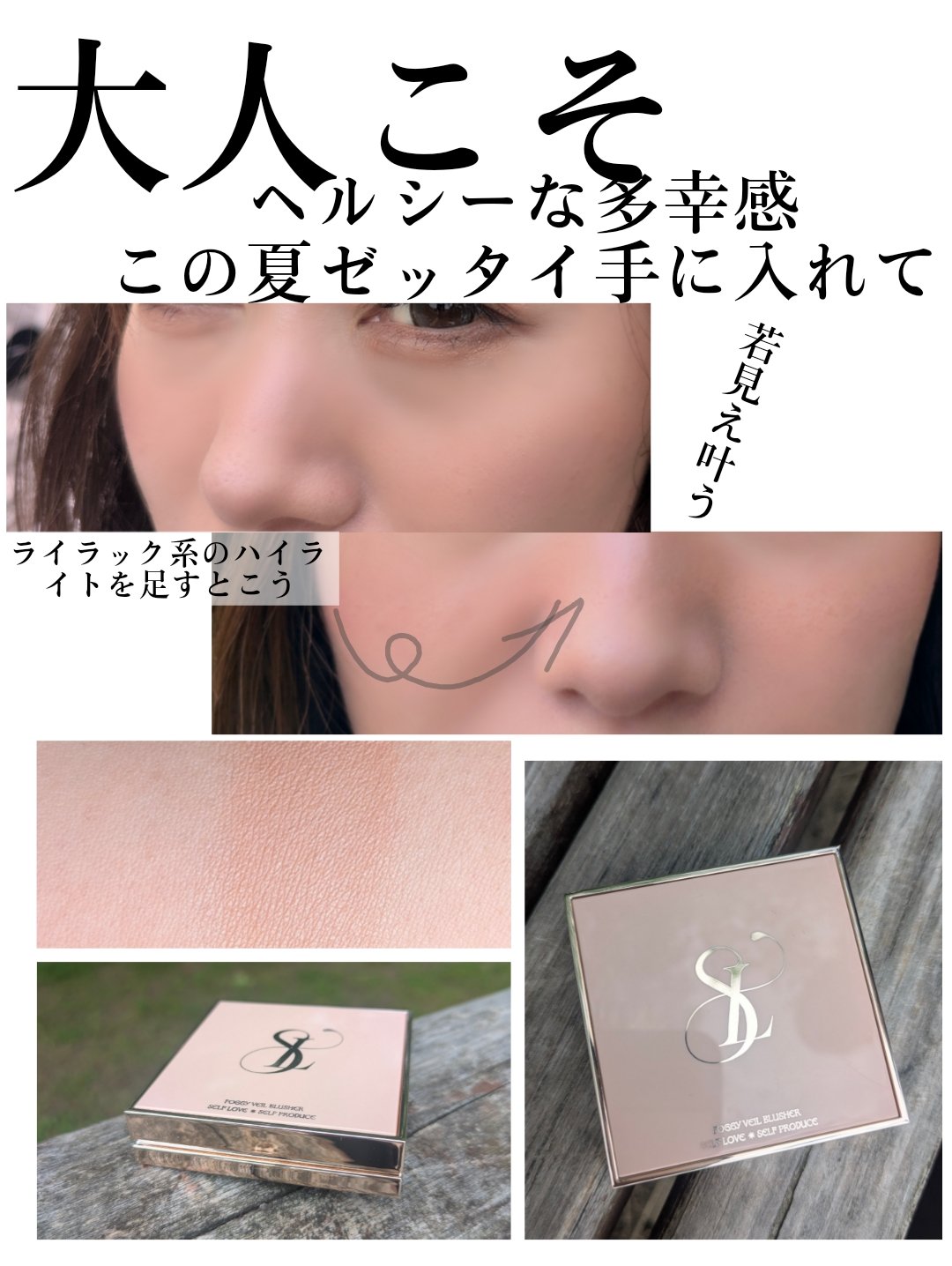 SELVEは、インフルエンサーの齊藤早紀さんがプロデュースしたコスメブランドで、'なりたい自分を叶えるコスメブランド'です まず、パケがピンクゴールドで、高級感があります そして、鏡付き フラッシュをたいて撮ると、多色ラメが入っていて、頬にのせるとじゅわっと血色感が出ます