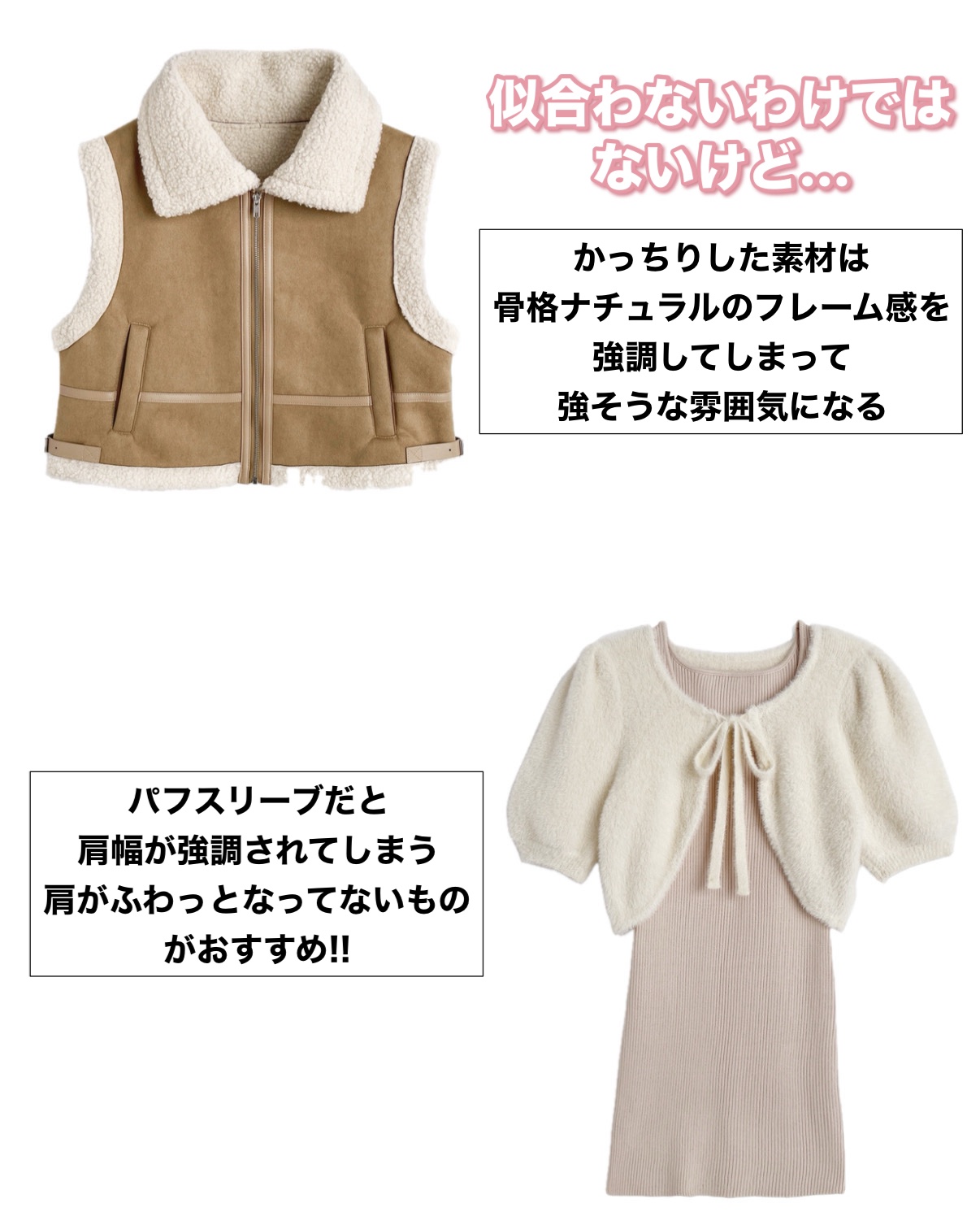 𓊆ྀི骨格ナチュラル事故りやすい服𓊇ྀི骨格ナチュラルが着ると事故りやすいNG服をまとめました!特徴としては🩰骨感がしっかりしている・肩や鎖骨、関節の存在感が比較的はっきりしている・首の付け根から肩にかけて骨ばって見えることも多い・手足の関節(手首・足首・ひじ・ひざ)が大きめに見えるなので、特に膝と肩を目立たなくすればOK!ぴったりした服装はフレーム感が目立って着こなしにくいので、少しオーバーサイズがジャスト♡柔らかい質感の服は苦手なのでナチュラルな天然素材やざっくりローゲージのニットがおすすめ🧸画像は許可いただいてます♡ぜひ試して見てください!#新シーズンあか抜け計画#プチプラ#秋コーデ#骨格ナチュラル#秋メイク#イエベ春#ブルベ夏#イエベ秋#ブルベ冬#イエベ#ブルベ