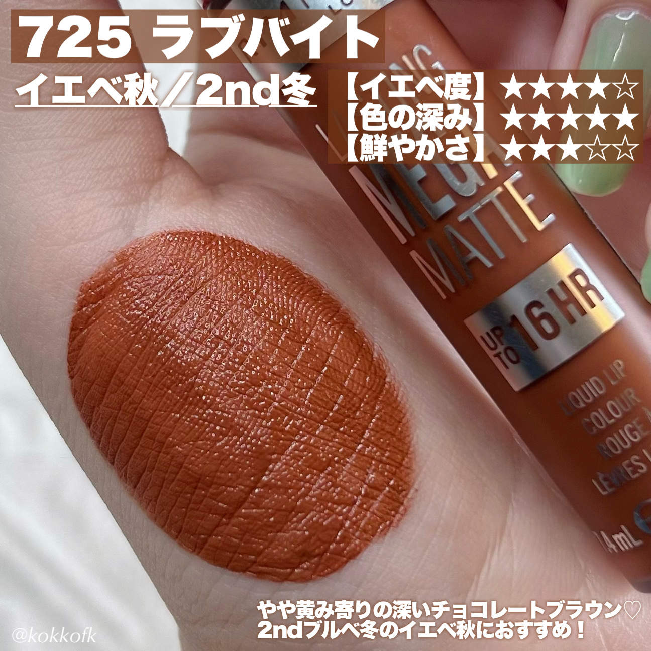 リンメル新作ほわっと高発色マット☁️/〻リンメル────────────ラスティングメガマットリキッドリップカラー全6色¥1540(税込)[11/10(金)から全国発売開始]リンメルさまからいただきました!高発色でおしゃれな雰囲気になれるのに乾燥しにくくて色持ちがいい新作リップ💄かっこいい感じやモードな雰囲気が好きな人にすごくおすすめな質感です!独特の強めな甘い香りがついているのでマスクをする人はちょっと注意かも⚠️-☞200ピンクブリンクやや黄み寄りの柔らかめコーラルピンク2ndブルベ夏のイエベにおすすめ!☞725ラブバイト黄み寄りのとても深いチョコレートブラウン2ndブルベ冬で深みが得意なイエベ秋に!-この新作は11/10(金)から発売中です!ぜひ皆さんもチェックしてみてね♡【この投稿もおすすめ】・ロムアンドリップバーム全色スウォッチhttps://lipscosme.com/posts/5649765?_t=zLqY&_r=eWgQl2・セザンヌハイライト全色スウォッチhttps://lipscosme.com/posts/5684110?_t=zLqY&_r=eWgQl2・KATEリプモンスフレマット全色スウォッチhttps://lipscosme.com/posts/5652381?_t=zLqY&_r=eWgQl#PR#リンメル#RIMMELロンドナー#実はこれプチプラなんです#リンメル_リップ#rimmel#rimmel_リップ#マットリップ#新作コスメ#新作コスメ2023#イエベ春#イエベ秋#イエベ秋_リップ#イエベ春_リップ#イエベメイク