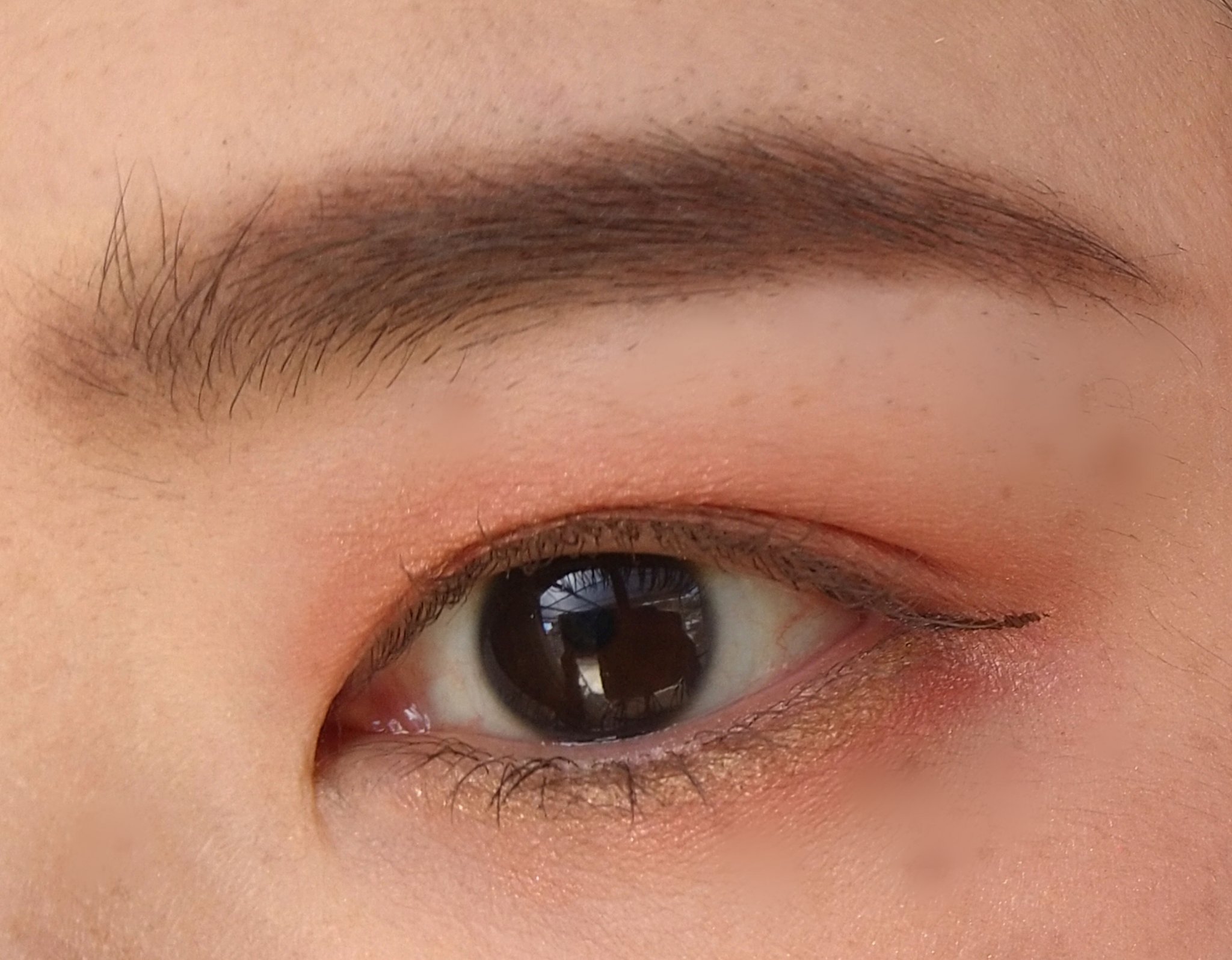コーラルを上下瞼に広げ オールザットグリッターズを上瞼の中央に乗せました。 天気がよかったので明るいカラーでメイクしました😀💗 コーラル×イエローグリーンメイクでした🌈