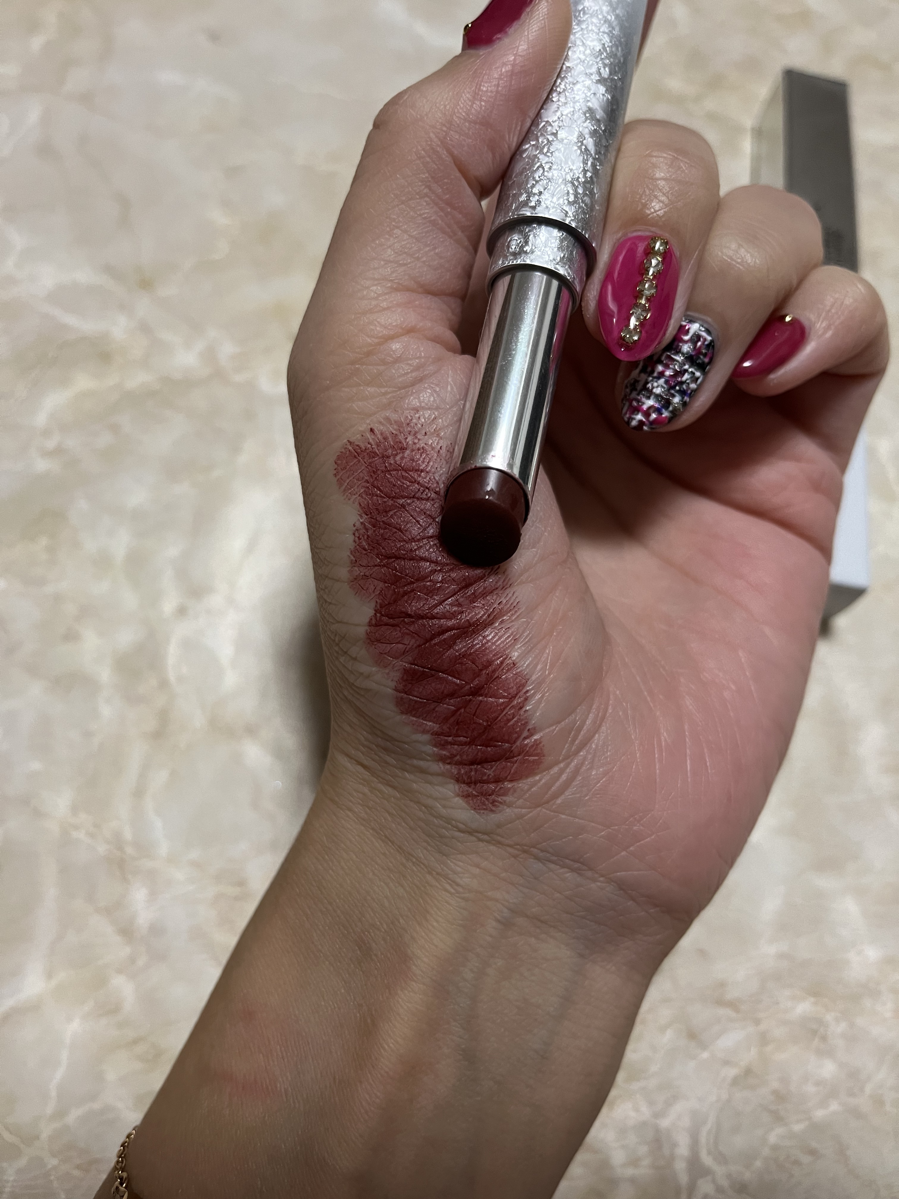 M・A・Cパウダーキスベルベットブラースリムリップスティックココアキスウォームブラウンホリデー限定色❤️これは絶対好きな色だと思ってた買う前から😁やっぱかわいい😍ちょっと塗り直す時にちゃんと落としてから塗らないと汚くなっちゃったからそこだけは注意だと思った💦濃いから余計かな?チークにしても、絶対かわいい😍今度使ってみよ😁あとはやっぱ見ためがすき💕💕
