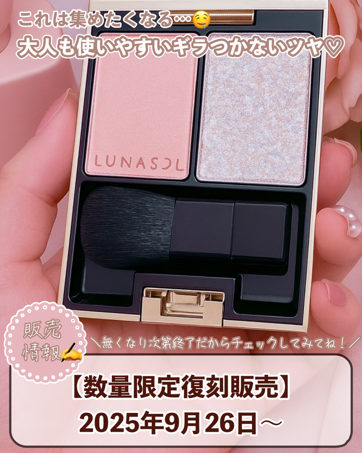 テクスチャー 流石LUNASOL、しっとりです✨ ハイライトが宝石のよう✨✨✨ きゃわいい😍😍😍 これ定番にして欲しい😍✨ メチャ可愛いし、ハイライトキレイ❤️ 限定なのが勿体ない商品ですね😆