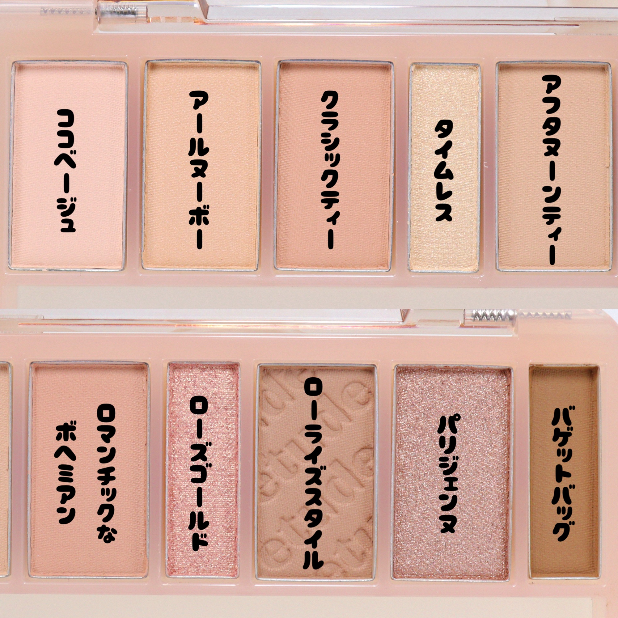 ETUDEのシャドウ初めてだけど、テクスチャーは柔らかく乗せやすい! そしてみたまま発色すぎて可愛い🥺 ヌーディーベージュ系で深みある目元を演出🎞️ そしてくすみマットカラーのベース×透明感の ある繊細ラメで目元に立体感を与えてくれる。 気づいたら買ってました🤣🤣笑
