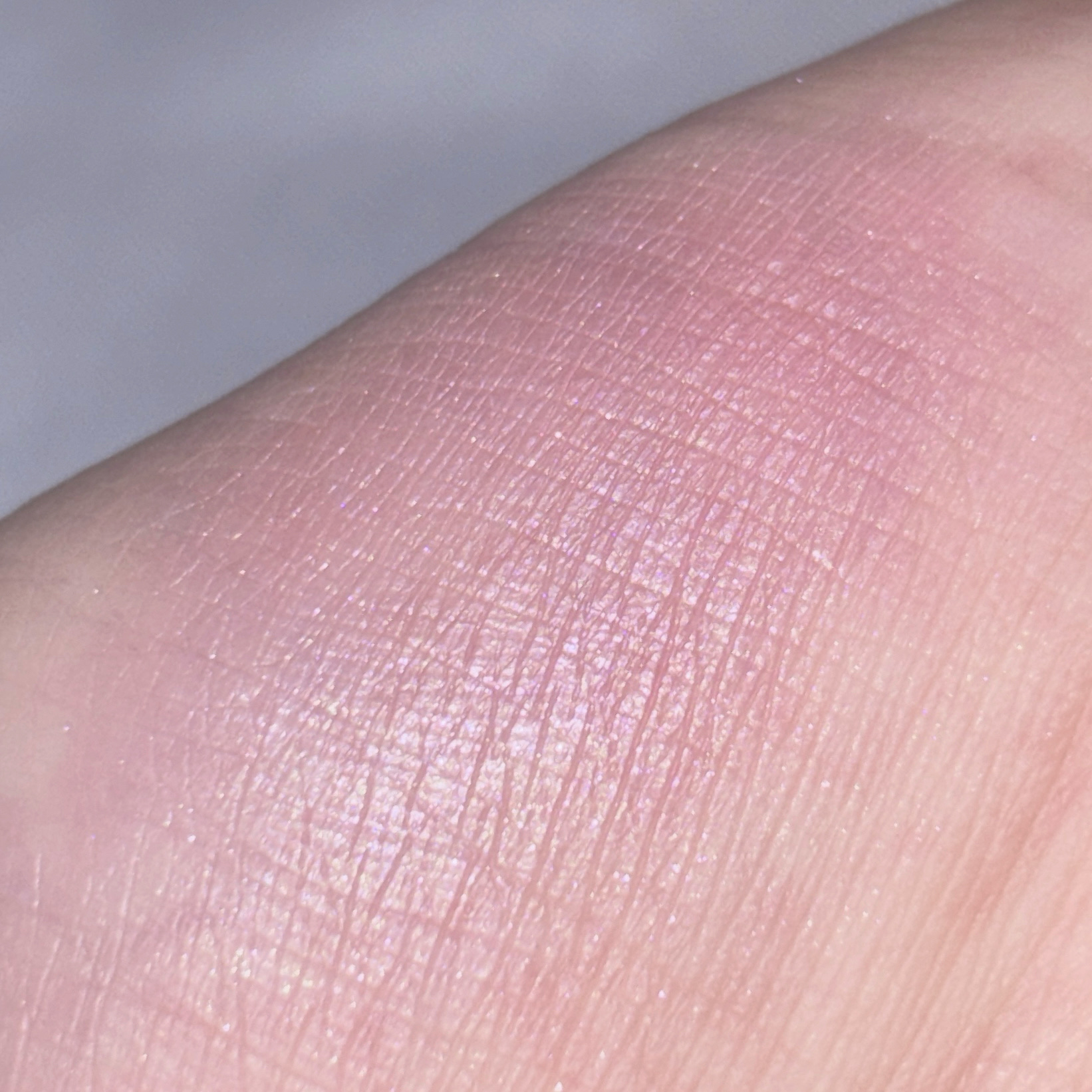 見た目は結構パープルなんだけど手に出してみると色はそこまで強く出ないシアーな発色! 色が強く出るというよりはパールが強いからハイライトとしても使えそう! つやつやパールが可愛すぎ💜