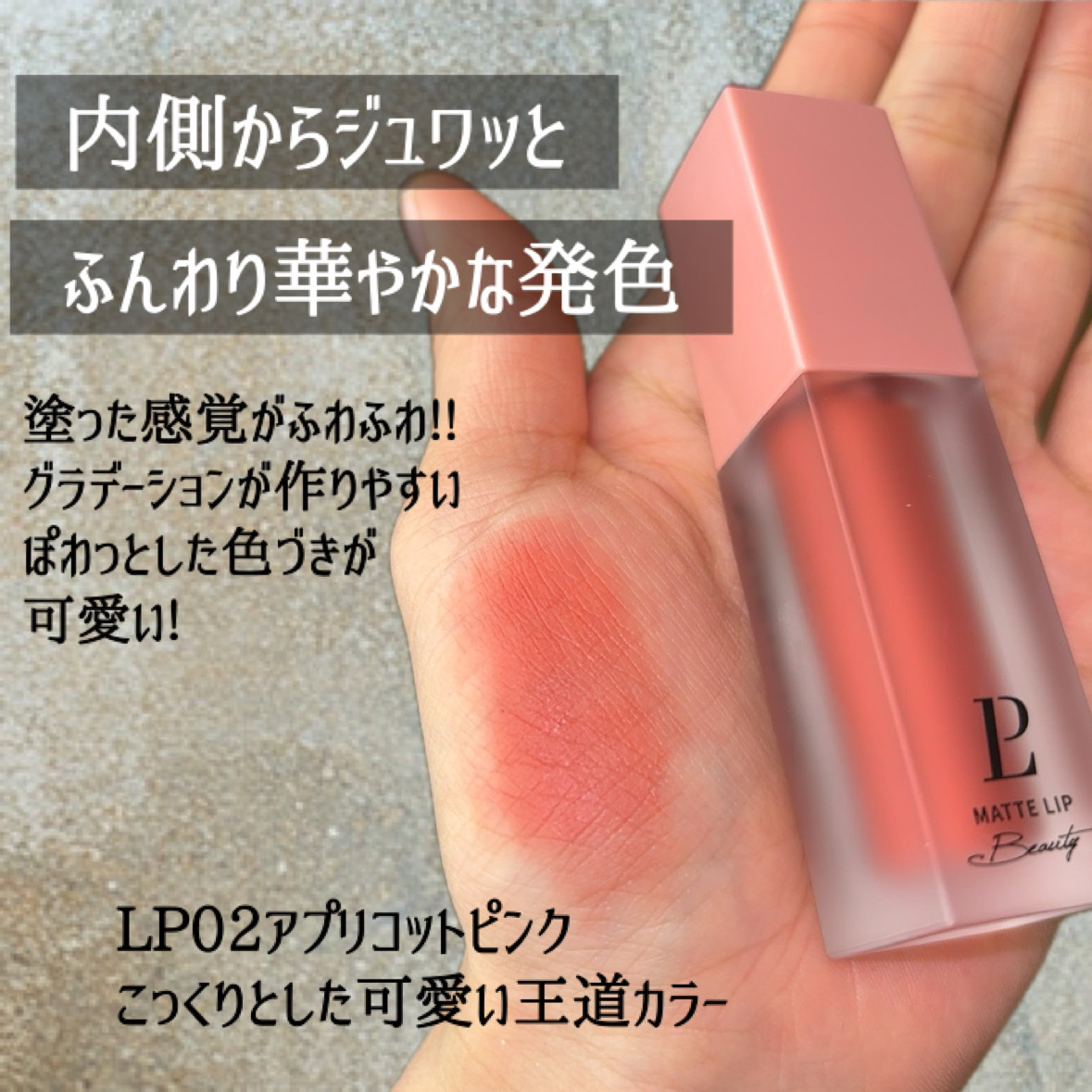 可愛すぎる泥質感なふんわりマットリップ/📝LEPOREMマットリップLP02アプリコットピンク 新感覚の”泥質感”とはなんぞや?って思ってたけど、塗り心地がたしかに泥!!ふんわり泥ムースを塗っているようなそんな感覚です!!そしてそのふんわり感がめちゃ可愛い!!LP02は王道の誰にでも似合いそうなカラー私は若干オレンジみが強めに発色華やかな色味で雰囲気を一気に明るくしてくれますグラデーションリップにしても良さそう!!色味持続は良い!乾燥はしずらいけど擦っちゃうと乾燥しちゃうので注意です!!保湿リップは必須なんと10色展開なので自分に似合う色が選べますおすすめです☑️#PR#leporem#ルポレム#マットリップ#リップ#リキッドアイシャドウ#グリッター#プレゼントキャンペーン#泥質感リップ