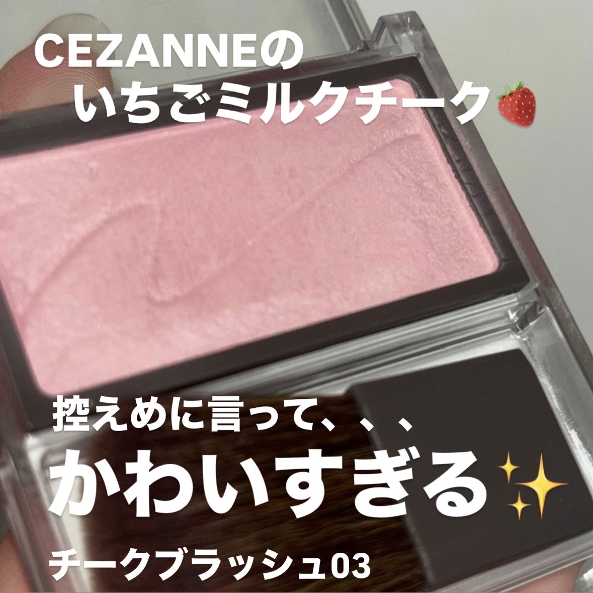 CEZANNEチークブラッシュ03ミルクモーヴリピ買いです〇色薄く白がかったピンクで、自然な血色感と淡い雰囲気を出してくれます〇使い方ブラシにとってふんわりと頬全体に載せています減りが早く、最後は角に残って取りにくいのが難点です丸い形だったらより取りやすいのかな?でも安くて色味もとても可愛いので満足ですブルベの方におすすめの色味です